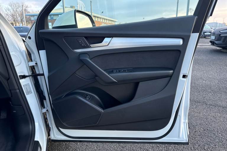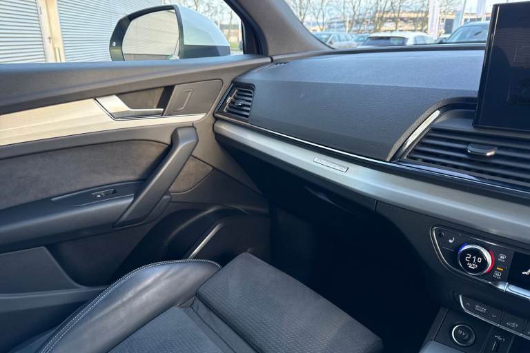 Finished in Glacier White this Audi Q5 S line comes with the TFSIe plug in petrol hybrid engine. This four wheel drive hybrid features a 2.0 litre petrol engine and comes with a Type 2 socket for AC charging. This Audi offers impressive performance, accelerating from 0 to 62 miles per hour in a swift 6.1 seconds. This striking vehicle sits on a set of 19"" alloy wheels, allowing you to stand out from the crowd. This vehicle also comes with a Tire pressure monitoring system, keeping you informed whilst youre on the move. The rear of the vehicle is fitted with a reversing camera, allowing you to easily park and manoeuvre your vehicle. This Q5 is built with a range of safety features designed to provide peace of mind as you travel. These features include Extended pedestrian protection, Hill Hold Assist and Audi Pre-sense City. Inside, youll find a multifunction steering wheel that allows you to control your music, cruise control and Audi Virtual Cockpit. Here you can see information about your car, phone connectivity and navigation system, allowing you to easily navigate whilst on the move. The cabin is fitted with 3-zone climate control that allows you to easily adjust the temperature within the vehicle to your liking, whilst the heated front seats are designed to keep you cozy no matter the weather outside. This vehicle is compliant with the Clean Air Zone (CAZ) or Ultra Low Emission Zone (ULEZ) standards! Not only will it help you avoid penalties and fines when travelin...