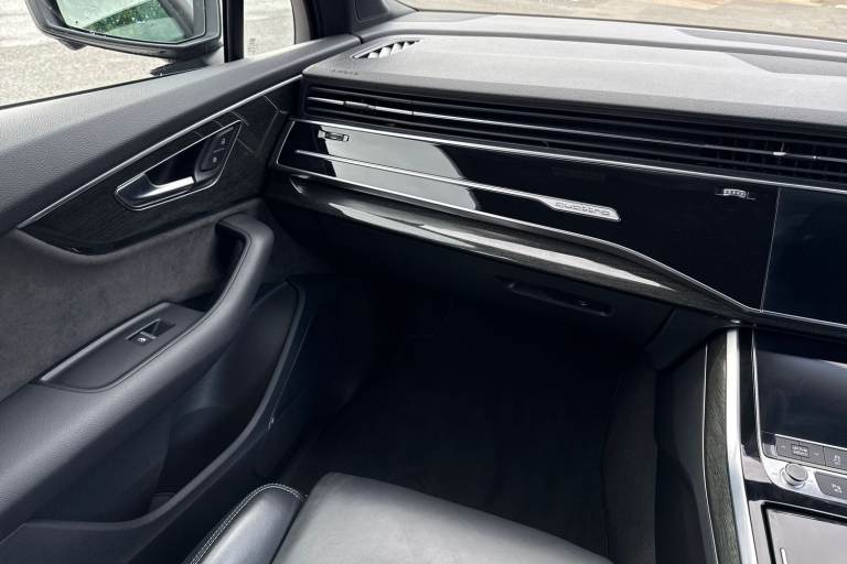 This 2021 Audi Q7 TDI V6 Black Edition presents an exceptional ownership proposition, having been meticulously maintained by a single owner and boasting remarkably low mileage for its age at just 39,889 miles. As an Audi manufacturer approved vehicle, it offers peace of mind, and its Euro 6 compliant 3.0 litre diesel engine paired with four wheel drive ensures capable performance. The Black Edition trim enhances its striking appearance with 22 inch alloy wheels in an anthracite black design, and the City Assist Pack, including Blind Spot Assistance, adds a layer of sophisticated safety. With seven seats, this Q7 is ready for any family adventure, and its generous boot space provides ample room for all your luggage. The Q7 TDI V6 Black Edition excels in several key areas, demonstrating its superiority over comparable vehicles. Its impressive acceleration, achieving 0-62mph in a swift 6.5 seconds, highlights its powerful yet refined performance. Furthermore, its substantial towing weight of 3500 kg makes it a highly versatile option for those needing to tow caravans or trailers. The vehicle also benefits from a low insurance group, making ownership more economical. These combined attributes underscore the Q7s blend of performance, practicality, and value.