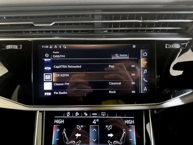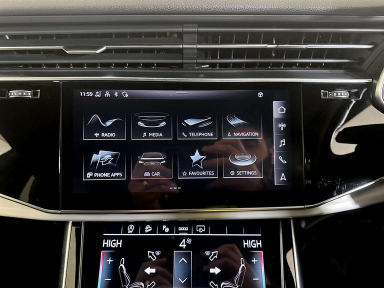 This 2021 Audi Q8 TFSI V6 S line is a superb example, having been owned by just one discerning individual. This impressive four wheel drive SUV boasts a powerful 3.0 litre petrol engine, meeting Euro 6 emissions standards. Its S line trim level ensures a sporty aesthetic and enhanced specification, complemented by advanced HD Matrix LED headlights with dynamic front and rear indicators. For convenience, it features a rear view camera for easier parking, electrically adjustable front seats with a driver memory function, and a 2 zone automatic climate control system. Comfort is further enhanced by heated front seats, making every journey a pleasure. The Audi Q8 TFSI V6 S line offers a compelling blend of performance and practicality. Its acceleration is notably brisk, achieving 0 to 62 miles per hour in just 5.9 seconds, demonstrating its dynamic capabilities. This performance, combined with its substantial 2800 kg towing weight, positions it as a versatile choice for various needs. Furthermore, the generous boot space provides ample room for luggage or shopping, making it an ideal companion for both daily commutes and longer adventures.For peace of mind this vehicle has only had 1 registered owner and has completed a multi point AA inspection.Competitive finance is also available.We are open 7 days a week and have more than 1500 cars to choose from.All our Euro 4 Petrol and Euro 6 Diesel vehicles meet the ULEZ standard.Vehicle specification can be found below. From time to time vehicles have manufacturer recalls notified. Please read our recall policy on our website for further information.