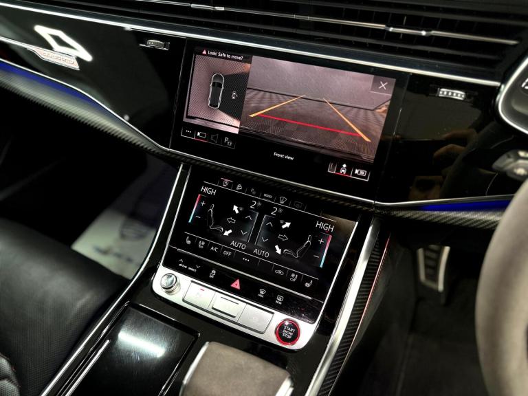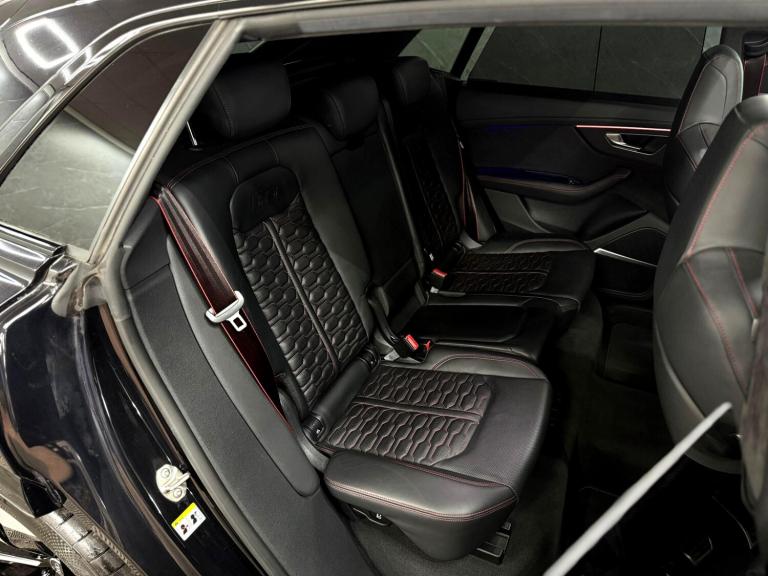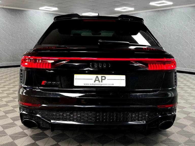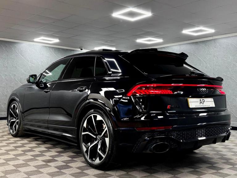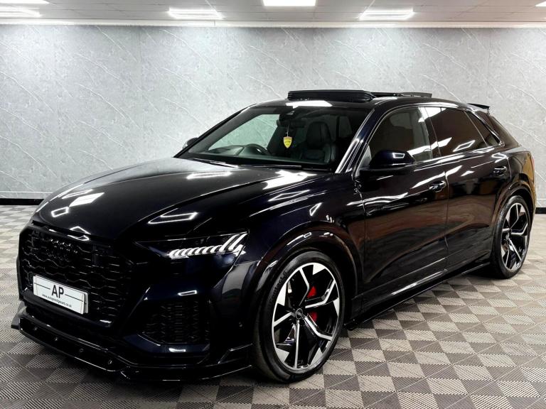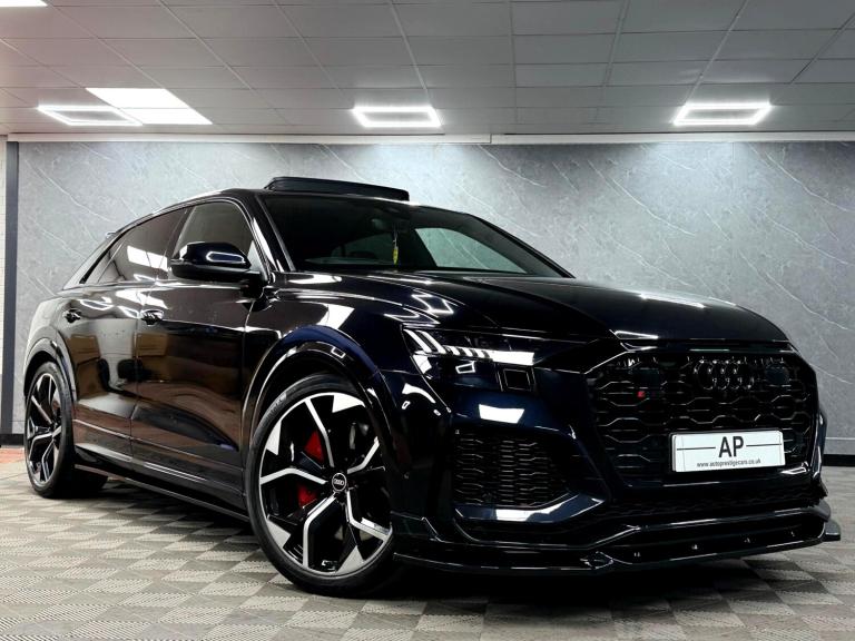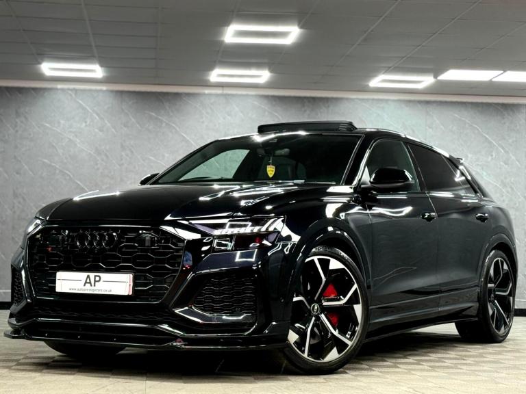 Autoprestige - Home of the finest selection of bespoke performance and prestige vehicles...Buy with complete confidence...We are pleased to present another stunning 2021 Audi Rsq8 Vorsprung finished in the beautiful Audi exclusive, crystal effect Orca Black over 3-Stage heated electric memory black full valcona leather RS SUPER SPORT QUILTED seats with contrasted express red diamond stitching.Complimented with only 2 PREVIOUS OWNERS backed by a FULL AUDI SERVICE HISTORY - JUST BEEN SERVICED AT 43400 by Audi - Previously benefitted from major service at 35k and 37k which included spark plugs as well as brake fluid change and Panroof water drain service - Recent new 2x front CONTINENTAL TYRES - All 4x matching tyresHere at AP, we pride ourselves on providing vehicles which suit individual taste, hence we have applied a full maxton design gloss black aero package consisting of front splitter, side skirt extensions, rear boot spoiler extension, middle boot spoiler extensions as well as smoked ppf front and rear lights.As this is the VORSPRUNG MODEL, it comes packed with extras, there is not an option missing...Full spec includes full exterior black optics pack including badges, tilt/slide panoramic glass sunroof with dual auto blind, drivers assistance pack - Adaptive cruise control,Lane keeping assist,Blind spot monitoring, RS Sports exhaust, 23""Audi Sport alloys finished in 2-tone black/polished over candy red RS steel brake calipers, Rare massage seats, Comfort & Sound pack, Bang and olufsen sound, Technology pack, Head up display, Heated steering wheel, 4-Zone climate control, Rear heated seats, 360 parking cameras and park pilot self parking, Wireless Apple CarPlay, Wireless phone charger, Auto-dimming interior and exterior mirrors, Carbon inlays, Rear privacy electric blinds plus the usual Vorsprung refinements...Supplied with 2 keys and all supporting paperwork
