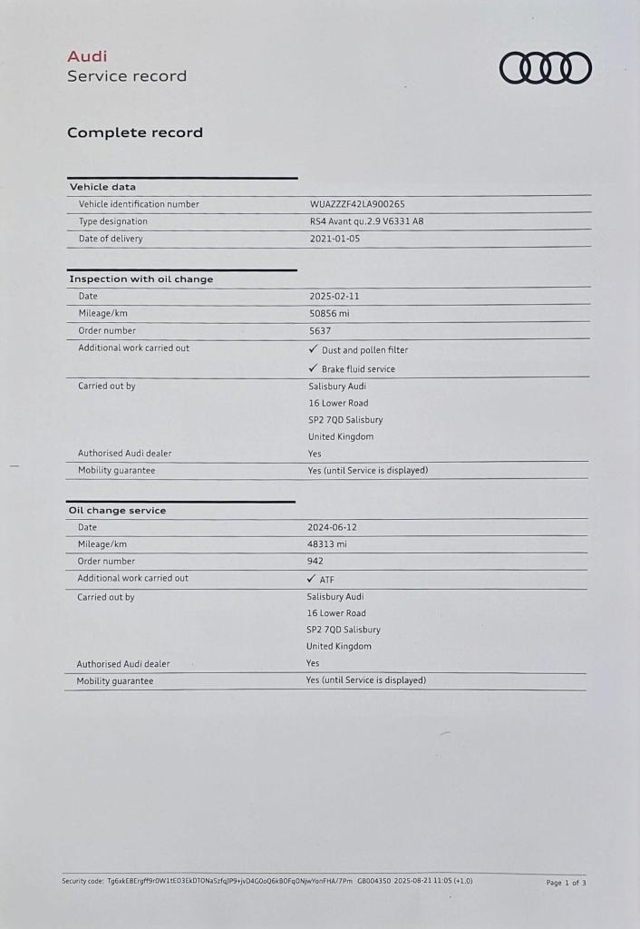 Posting for 7+ years2021 Audi RS4 Avant 2.9 TFSI V6 Tiptronic quattro Euro 6 (s/s) 5dr Petrol