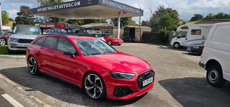 This 2021 Audi RS4 Avant TFSI V6 offers an exceptional blend of performance and practicality, boasting a powerful 2.9 litre petrol engine and a sophisticated four wheel drive system. As a Euro 6 compliant vehicle, it meets stringent emission standards. This RS4 Avant is equipped with a suite of advanced features designed to enhance your driving experience, including a helpful rear view camera with parking assistance, Audi Side Assist for improved blind spot awareness, and striking Matrix LED headlights complemented by LED rear lights and dynamic indicators. Inside, you'll find the comfort of heated front seats and the convenience of Parking System Plus, which includes front and rear sensors for effortless manoeuvring. Experience exhilarating performance with this Audi RS4 Avant, capable of accelerating from 0 to 62 miles per hour in a rapid 4.1 seconds. This impressive acceleration highlights how the RS4 Avant surpasses many other vehicles in its class, offering a truly dynamic driving sensation. The combination of its potent engine, advanced drivetrain, and comprehensive safety and convenience features makes this 2021 Audi RS4 Avant TFSI V6 a compelling choice for those seeking a premium estate car that excels in both everyday usability and thrilling performance. Features Include: , 19in alloy wheels - 10-spoke-star design forged in silver, 2 usb charging ports, 6-airbag system, anti theft locking wheel bolts, anti-theft alarm, audi beam - exterior puddle lighting with audi rings logo, audi connect infotainment services (36 month subscription from new), audi connect safety and service - e-call, audi phone box with wireless charging, audi pre-sense city, audi side assist, audi smartphone interface, audi sound system, audi virtual cockpit with rs specific display, auto-dimming rear-view mirror, black cloth headlining, brake calipers painted in black with rs 4 logo at the front, cruise control system with speed limiter, dab digital radio reception, deluxe 3-zone electronic climate control, door handles - body coloured, door mirrors - heated-electrically adjustable-folding and auto dimming with built-in led side indicators and kerb-view on passenger side, door mirrors - matt aluminium look housings, door sill trims - illuminated with rs4 logo, esc - electronic stabilisation control inc abs - asr and edl, electric load area cover, electric windows - front and rear, electrically adjustable front seats, electromechanical power steering, email - calendar and