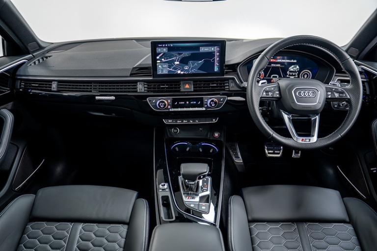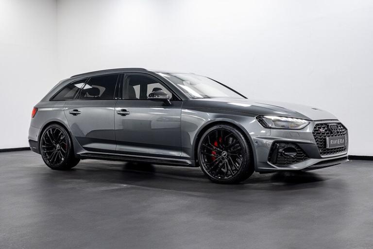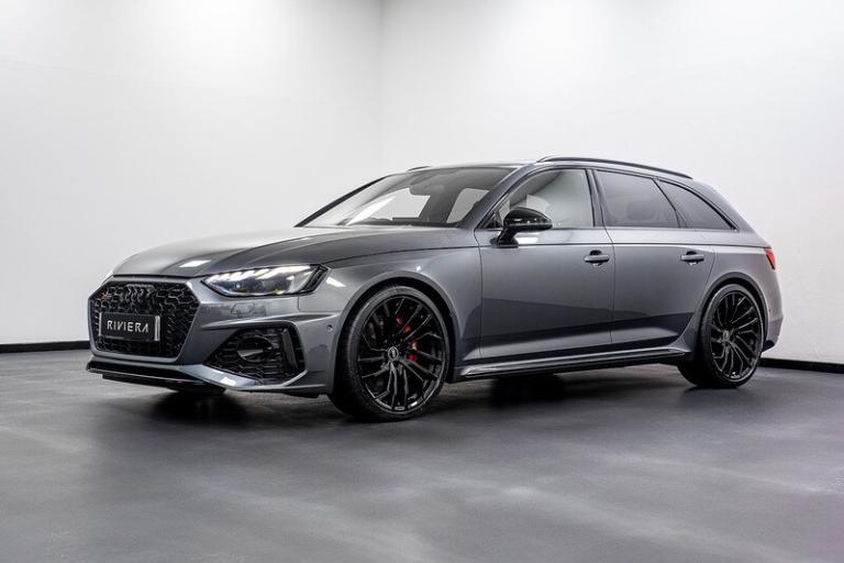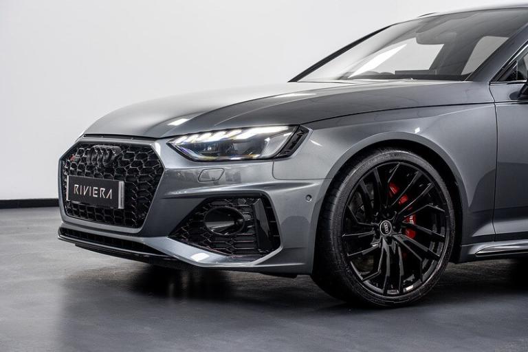Daytona Grey,Red Brake Calipers in High-gloss Finish with RS Logo at the Front, 2 USB Charging Ports, Audi Connect Infotainment Services (36 Month Subscription From New), Audi Connect with Amazon Alexa Integration, Audi Smartphone Interface, Bluetooth Interface, DAB Digital Radio Reception, MMI Navigation Plus including MMI Touch, Two Additional USB Ports for Rear Passengers in the Rear Centre Console, Audi Side Assist, Head-Up Display, Parking System Plus - Front and Rear Sensors, RS Audi Drive Select, Voice Control, 20in Alloy Wheels - 9.0J 5-Segment-Spoke - Evo Style Design - in Matt Titanium Look - High Sheen Finish - Audi Sport, Anti Theft Locking Wheel Bolts, Audi Rings and Lettering - Glossy Black, Black Roof Rails, Black Styling Package, Brake Calipers Painted in Black with RS 4 Logo at the Front, Door Handles - Body Coloured, Door Mirrors - Heated-Electrically Adjustable-Folding and Auto Dimming with Built-in LED Side Indicators and Kerb-view on Passenger Side, Door Mirrors - High-Gloss Black Housing, Electric Windows - Front and Rear, Panoramic Glass Sunroof, Privacy Glass with Rear Acoustic Glazing, RS 4 Badges on Grille - Front Wing Panels and Rear, RS 4 Dual-branch Chrome Tailpipes with Large Oval Pipes Each on Left and Right, RS Body Styling, RS Sport Exhaust System, Tyre Repair Kit, Windscreen with Acoustic Glazing, Audi Beam, Light and Rain Sensor, Matrix LED Headlights with LED Rear Lights and Dynamic Front and Rear Indicators, Audi Virtual Cockpit with RS Specific Display, Auto-Dimming Rear-View Mirror, Black Cloth Headlining, Comfort and Sound Package, Deluxe 3-Zone Electronic Climate Control, Door Sill Trims - Illuminated with RS4 Logo, Electric Load Area Cover, Electrically Adjustable Front Seats, Email - Calendar and Text Messages can be Displayed on your Vehicles MMI, Front and Rear Floor Mats, Front Centre Armrest, Heated Front and Outer Rear Seats, Inlays - Piano Black, Keyless Go, Leather Door Armrests and Knee Pad, Leather Steering Wheel in 3-spoke Design with Multifunction Plus and Steering Wheel Heating with RS badging, Pedals in Stainless Steel, Pneumatic Massage Function, Power Operated Tailgate, RS-Specific Gear Lever Knob in Perforated Leather with Contrast Stitching, Split-folding Three-seater Rear Seat Bench with 3-part - 40-20-40 Design and Rear Centre Armrest, Tool Kit, Dynamic Steering, Electromechanical Power Steering, Quattro Sports Differential, RS Model Enhanced Braking System, RS Sport Suspension Plus with Dynamic Ride Control - DRC, Top Speed Restriction Increase to 174mph, 6-Airbag System, Anti-Theft Alarm, Audi Pre-Sense City, Driver Assistance Pack - Tour, ESC - Electronic Stabilisation Control inc ABS - ASR and EDL, First Aid Kit and Warning Triangle, Hill Hold Assist, ISOFIX Child Seat Mounting and Top Tether, Multi Collision Brake Assist, Parking Assistance Pack Advanced, Pop-up Bonnet, Remote Control Key with RS Emblem, Seat Belt Monitoring.Riviera Automotive are proud to bring to market this Audi RS4 Avant Vorsprung. The car is finished in daytona grey with black leather interior.Optional Features Include;Sliding glass panoramic roof Head up displayB & O sound systemFront and rear heated seats Top view cameraWireless chargerRed calipers 20"" alloy wheels Exterior black pack The car is offered in exceptional condition with 18250 miles covered, service history and comes with two keys.