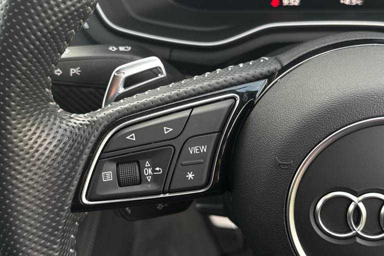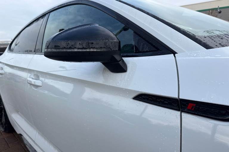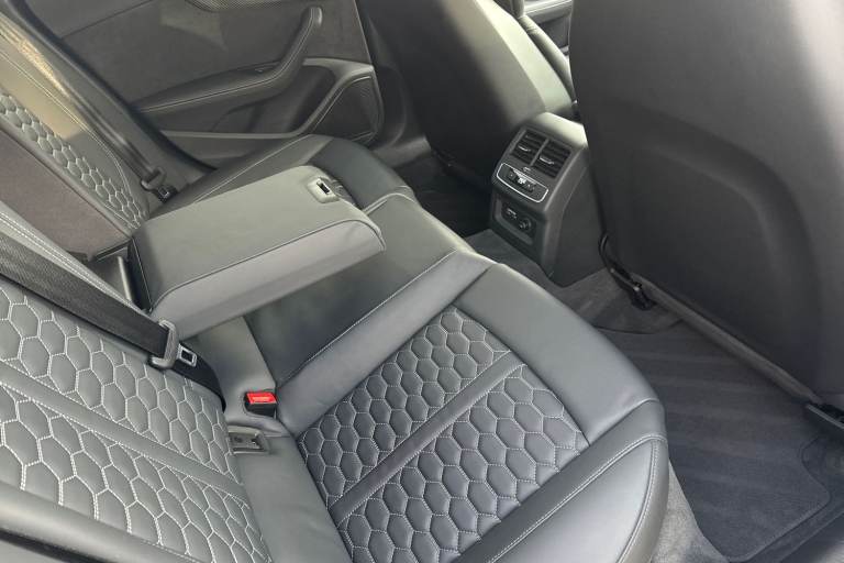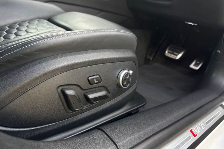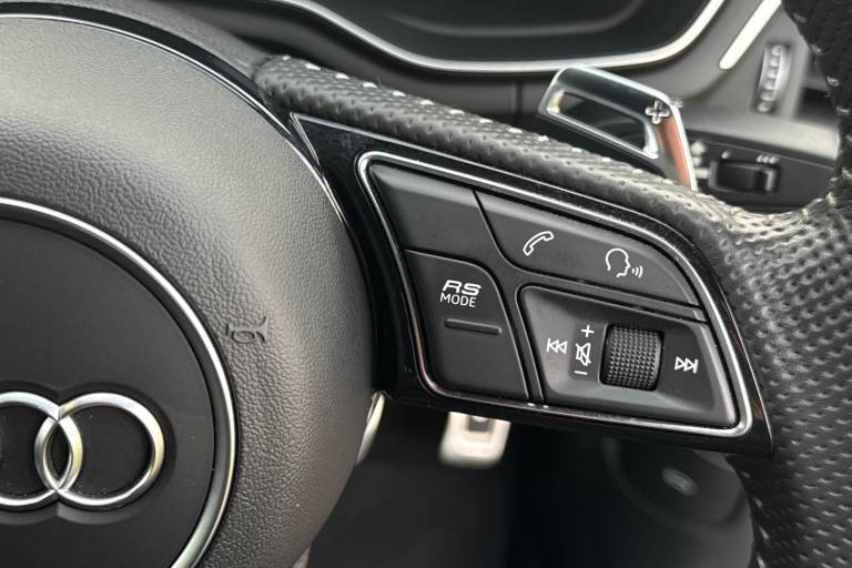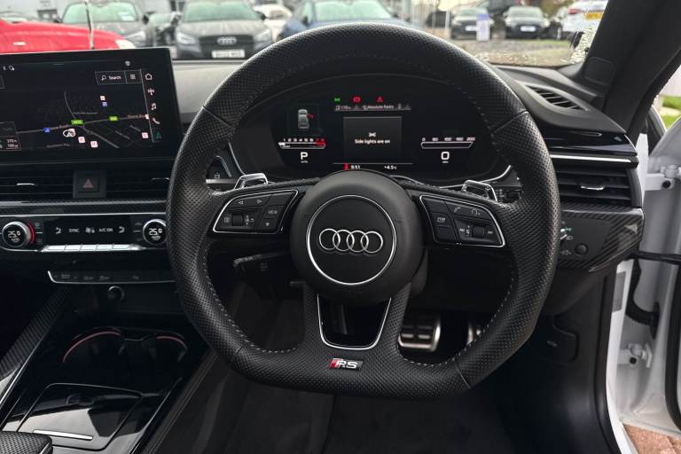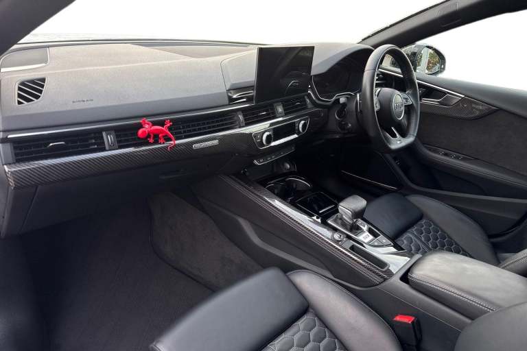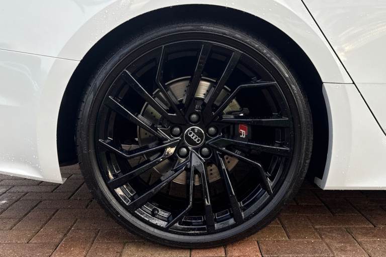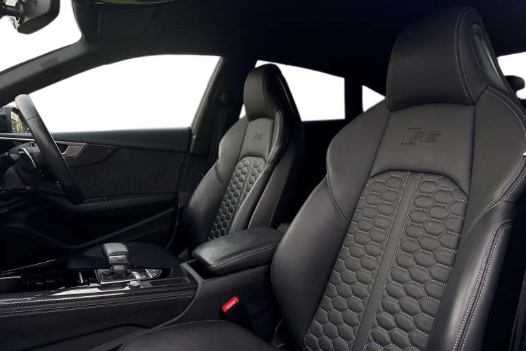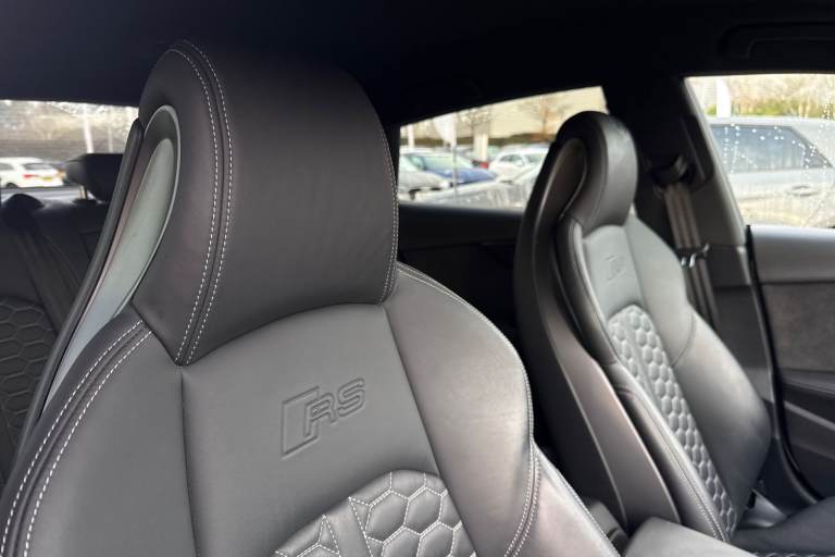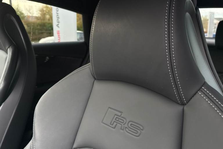 Experience the perfect fusion of high-performance engineering and everyday practicality with this striking Approved Used Audi RS 5 Sportback Carbon Black, finished in the ultra-clean and sophisticated Glacier White Metallic. This model combines Audi Sport power with an assertive, coupe-inspired design to deliver a truly exhilarating drive. Under the bonnet sits Audis renowned 2.9-litre twin-turbo V6, producing breathtaking performance with rapid throttle response and effortless acceleration. Paired with quattro all-wheel drive and an 8-speed Tiptronic gearbox, the RS 5 Sportback offers superb traction, precision, and confidence across all driving conditions. The Carbon Black specification enhances the RS 5s bold character with carbon-fibre exterior detailing, gloss-black styling elements, 19"" or 20"" Audi Sport alloy wheels (spec dependent), privacy glass, and Matrix LED headlights. The Glacier White Metallic paintwork provides a perfect contrast to the dark styling features, giving this car an unmistakable road presence. Inside, the cabin blends motorsport influence with premium comfort. Expect RS sport seats in fine Nappa leather, honeycomb stitching, flat-bottom RS steering wheel, carbon inlays, and Audis latest digital technology, including Virtual Cockpit Plus, MMI Navigation Plus, and Bang & Olufsen 3D sound on selected models. The spacious Sportback body style ensures usability without compromising on performance. Advanced assistance systems such as parking senso...