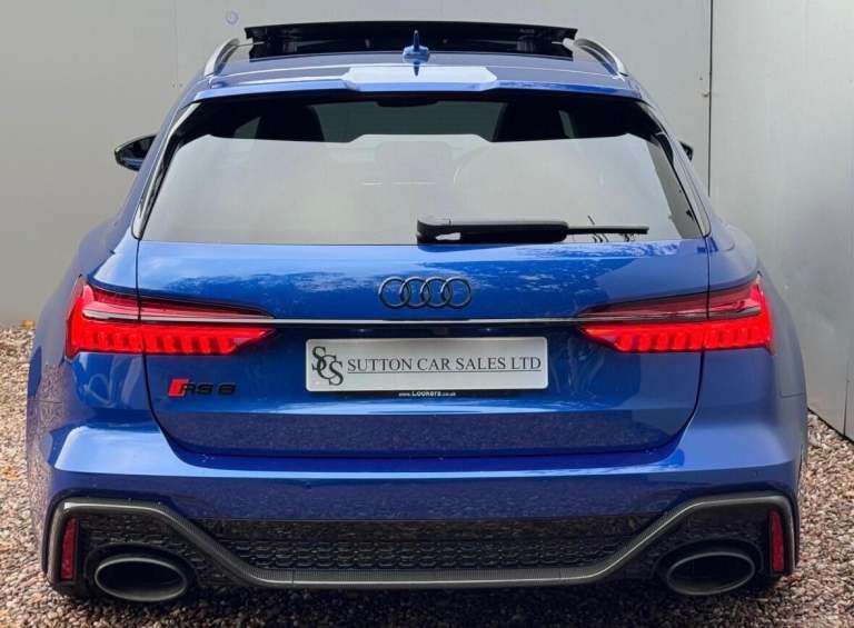 SUTTON CAR SALES ARE PROUD TO OFFER THIS STUNNING AUDI RS6 AVANT CARBON BLACK EDITION FINISHED IN METALLIC ULTRA BLUE WITH ONLY 14,000 MILES FROM NEW. THE FRONT END OF THE CAR HAS BEEN PROTECTED WITH PPF (PAINT PROTECTION FILM).NOW THIS CAR NEEDS NO INTRODUCTION - STUNNING RARE COLOUR AND VERY HIGH SPECIFICATION CAR AND SUCH LOW MILES. THIS IS A PRISTINE EXAMPLE.FACTORY OPTIONS INCLUDE:- CARBON CERAMIC BRAKES- PANORAMIC SUNROOF- BANG & OLUFSEN SURROUND SOUND- ADAPTIVE CRUISE CONTROL- SPECIAL PAINT (ULTRA BLUE)- HEATED AND COOLING SEATS- REVERSE CAMERA- ALCANTARA FLAT BOTTOM STEERING WHEEL- 21'' DIAMOND CUT ALLOYS WRAPPED IN MUCHELLIN PILOT SPORT 4S TYRES- AUDI SUPER SPORTS SEATS WITH ROCK GREY STITCHINGTHIS AUDI RS6 COMES WITH JUST 1 FORMER KEEPER FROM NEW AND HAS BEEN SERVICED AT AUDI ALL ITS LIFE AT THE FOLLOWING INTERVALS:DELIVERY INSPECTION- 18/01/2021-OIL CHANGE- 06/06/2022 AT 3300 MILES-OIL CHANGE- 04/12/2023 AT 7897-OIL CHANGE- 28/02/2025 AT 9726ALL OUR CARS COMES WITH A PROFESSIONAL DETAIL, 12 MONTHS MOT AND 3 MONTHS WARRANTY WHICH CAN BE EXTENDED TO 6, 12, 24 OR 36 MONTHS FOR TOTAL PEACE OF MND.BUY WITH CONFIDENCE- WE HAVE OVER 280 5 STAR REVIEWSWE ARE BASED IN SUTTON COLDFIELD (BASSETTS POLE), VIEWING STRICTLY APPOINTMENT ONLY, ALL MAJOR CREDIT/DEBIT CARDS ACCEPTED, PART EXCHANGE WELCOME AT TRADE VALUE, DEPOSITS TAKEN OVER THE PHONE, SECURE ANY OF OUR VEHICLES WITH A SMALL DEPOSIT OF £500, NATIONWIDE DELIVERY AVAILABLE