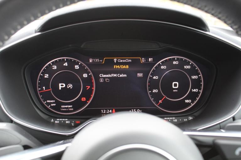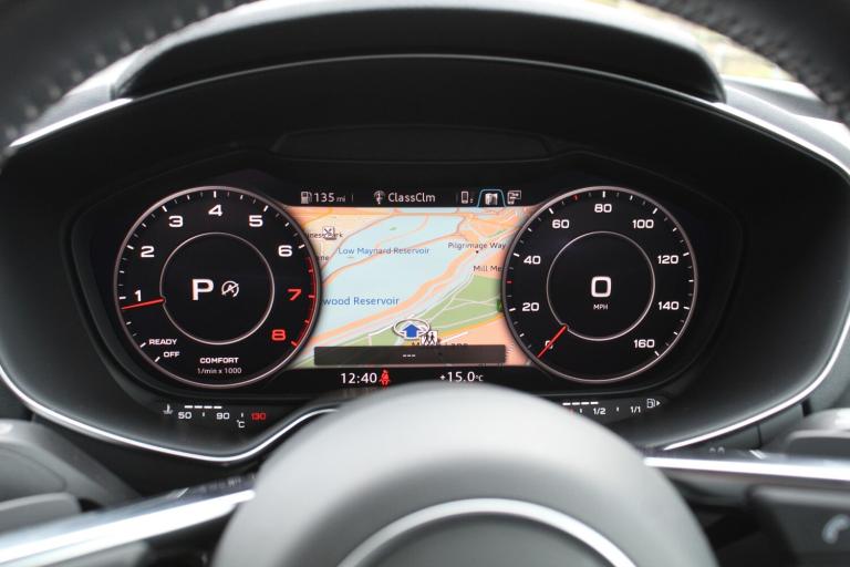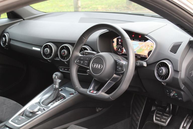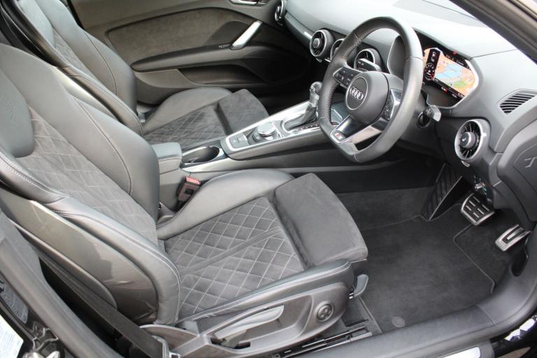 We are delighted to offer this stunning low-mileage Audi TT 2.0 TFSI 40 Black Edition S Tronic. This vehicle comes with an excellent specification, including the desirable Technology Package - a £1,495 factory-fitted optional extra. As expected with such a low-mileage example, the car presents beautifully throughout. It has had two owners from new and has been meticulously maintained, supported by a full service history. It was first serviced on 21st of November 2023 at 3,109 miles, and again on 3rd of December 2024 at 5,601 miles. Finished in stunning Mythos Black metallic with black Alcantara/leather Super Sport seats and contrasting matt brushed aluminium inlays. The specification includes the following: Technology Package featuring MMI Navigation Plus and Audi Connect Infotainment Services, Audi Virtual Cockpit, Audi Smartphone interface with Apple CarPlay and Android Auto, Heated front seats with 4-way electric lumbar support, Privacy glass, Black styling package, Fixed rear spoiler, 20"" '10-Y-spoke' design alloy wheels in gloss black with diamond-cut finish, S Line sports suspension, S Line badges on the front wings, Audi Drive Select, Cruise control and speed limiter, Rear parking sensors, LED headlights with LED rear lights and dynamic rear indicators, Manual air conditioning, Bluetooth phone connectivity with audio streaming, Voice control, DAB digital radio, CD/DVD player, Two SD memory card slots, Two USB ports, AUX-in, Keyless Go, Electric folding door mirrors, 3-spoke multi-function flat-bottomed leather-trimmed sport steering wheel with gearshift paddles and S Line badge, Auto start/stop system, Electric parking brake with auto-hold function, Tyre pressure loss indicator, Automatic headlights, Rain-sensing windscreen wipers, Electric front windows, Electric heated door mirrors, Remote central locking etc. This car is fully compliant with London's Ultra Low Emission Zone (ULEZ) and all other Clean Air Zone regulations. It has been HPI checked and cleared, confirming there are no outstanding finance issues or insurance write-offs etc. The car comes with two keys and the original Audi TT owner's manual, and it will be supplied with a full 12-month MOT at point of sale. A 3-month/3,000-mile warranty covering all major mechanical and electrical components is also included. All our vehicles come with free 12-month AA Breakdown Cover and are prepared and sold to the AA standard. We offer all usual dealer services, including competitive finance packages and nationwide delivery options. Five days drive-away insurance can be arranged. Part exchange welcome.
