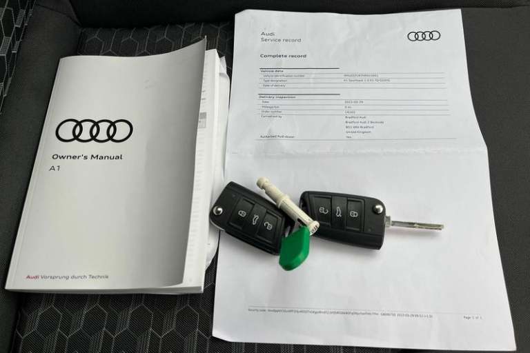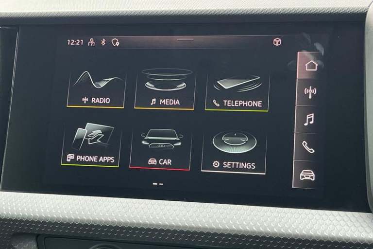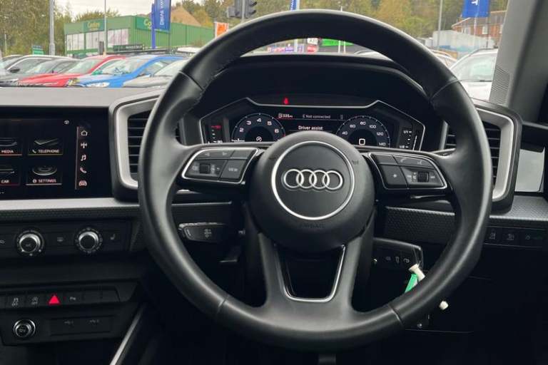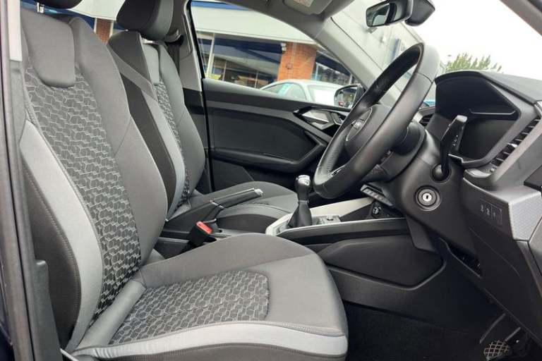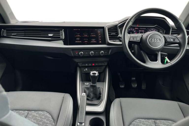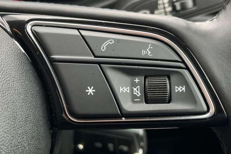 10.25 Digital instrument cluster display classis style instrument dials + speed, odometer, time, outside temperature, telephone menu + fuel level warning, Advanced driver attention and drowsiness monitor, Audi connect emergency call and service, Audi remote connect and control, Audi smartphone interface, Bluetooth interface, Camera based traffic sign recognition, Cruise control, Driver's information system, Electromechanical power steering, Lane departure warning system, Rear parking sensor, Service interval indicator, Speed limiter, Start stop system with recuperation, Voice control system, Washer fluid level indicator, Auto dimming rear view mirror, Body coloured bumpers, Body coloured door mirrors, Electric front and rear windows, Electrically adjustable, heated, folding door mirrors with integrated LED side indicator, Front side air inlets in grained matt black and C frame in anthracite black, Headlight cleaning system, Heat insulating glass windscreen and side windows, Heated rear windscreen, High level LED brake light, LED daytime running lights, LED headlights with range control LED rear lights + dynamic rear indicators, Light and rain sensors, Radiator grille and rear diffuser in matt anthracite black, Radiator protective grille frame in matt aluminium silver, Rear fog lights, Rear side wing doors, Rear wiper, Side front spoiler lips in grained matt black, 12V socket in centre console with two cup holders, 3 rear seats with headrests, 3 seat bench in 2nd row, 3 spoke