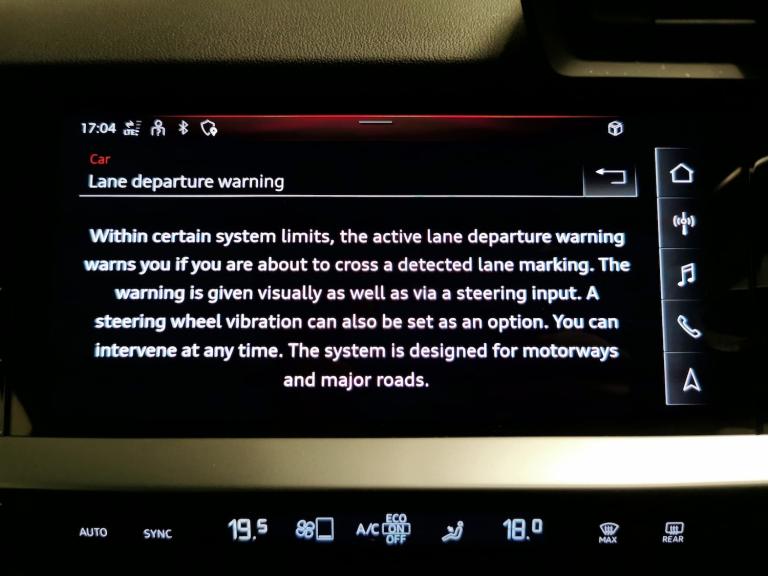 Experience sophistication with this black Audi A3 Sport Saloon. Enjoy top-tier entertainment from the Bang & Olufsen Sound System, stay connected with MMI Navigation Plus and Bluetooth, and drive with confidence using the reversing camera and lane departure warning. LED headlights offer brilliant visibility, while heated seats and climate control ensure comfort on every journey. Adapt your drive with multiple driving modes and relax with cruise control, making every trip a pleasure. 4 services recorded, last serviced on 25/07/2025 at 46,538 miles. MOT to 08/03/2027. Visit our website for service history, online valuation, full vehicle specification plus multiple images. Certain features listed may be available via subscription packages at extra costs, please consult with Audi for details. This vehicle is VAT qualifying. Any feature/option specified here is from 3rd party data. We cannot guarantee the accuracy of any specification supplied by a 3rd party. We recommend that you physically check the specification of the vehicle on site prior to purchase. This information does not form part of the buying contract. Terms & Conditions apply. We have over 2,000 cars available from our 10 national branches, check our website to see all our stock. Our Trustpilot rating is 4.4/5 with over 9,000 reviews.