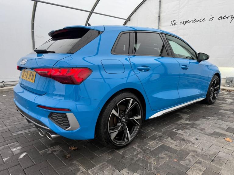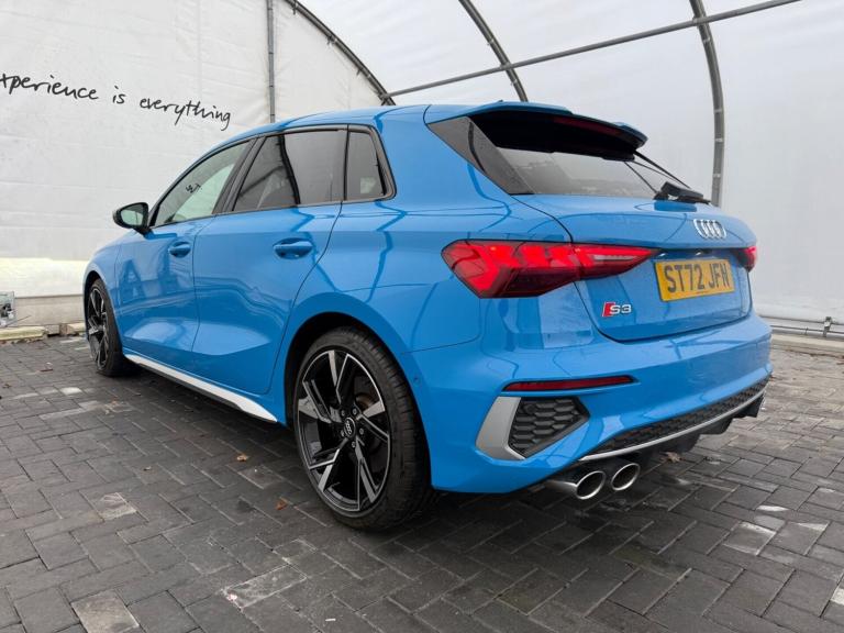 Turbo Blue AUDI S3! Amazing colour combo, this Turbo blue audi S3 coupled with the bright silver alloy wheels gives it a stand out look! 5 doors, and a decent sized boot giving it ultimate practicality and the new generation of tip tronic gearbox giving it an incredibly smooth drive. Audi LEd headlights with daytime running lights that look sharp and compliment the angles of the front end, with the wide open lower grills gives it an aggressive stance in any habitat. This specific S3 has just 22633 miles on the clock, and boasts several features such as the diamond stitched full leather, with heated front seats, front and rear sensors as well as a reverse camera and a full digital cockpit. Built in sat nav and apple car play means connectivity is easy and compatible with most modern phones. adaptive cruise control lets you not only set speeds, but also set distance so you can tag on to the car on front letting the car match speeds and brake and accelerate as it sees fit making longer journeys a doddle The ultimate in performance and practicality! For more info or to book a viewing or test drive get in touch with us today. Â
