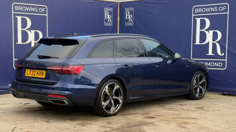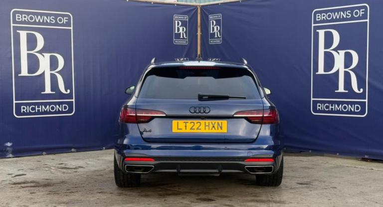 Browns of Richmond are proud to present the Audi A4 Avant Black Edition – a sleek, executive estate that blends premium sophistication with sporty practicality. Finished in Navarra Blue, this A4 Avant looks stunning with its Black Edition styling, including gloss black detailing, honeycomb grille, and privacy glass. Sitting on diamond-turned 5-arm Rotor alloy wheels, it commands attention with a bold, contemporary stance.Inside, the cabin showcases Audi’s renowned craftsmanship, featuring S line sports seats in upgraded black Nappa leather, premium trim finishes, and an ambient lighting package for a refined atmosphere. Technology is abundant, including Audi’s advanced infotainment system, sat nav, Bluetooth with voice control, Apple CarPlay/Android Auto, parking sensors, and a crystal-clear reversing camera. This example also benefits from the Comfort and Sound Package, adding Bang & Olufsen premium audio and enhanced convenience features.The A4 Avant doesn’t just look the part – it delivers a driving experience that’s smooth, responsive, and efficient. Its engineering reflects Audi’s commitment to performance and practicality, making it ideal for both long-distance cruising and everyday use.This example has been meticulously maintained, with a comprehensive service history that demonstrates exceptional care. It has also passed our comprehensive 114-point inspection, ensuring it’s ready for its next owner.At Browns of Richmond, we’re more than a dealership – we’re specialists in premium and hybrid vehicles, committed to guiding you through every step of ownership.Contact us today to arrange a test drive or learn more – we’re here to make your next move effortless.The advertised price is plus a £199 fee for the Browns Signature Care Package. Click here for details: [Website URL removed].