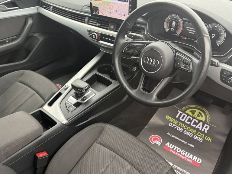 This 2022 Audi A4 Avant TDI Technik is a superb example, having had only one owner since new. This estate car features a 2.0 litre diesel engine and meets Euro 6 emission standards. Inside, youll find comfort with heated front seats, and seamless connectivity through the Audi Smartphone Interface, which supports both Android Auto and Apple CarPlay. The Technik trim also includes a Bluetooth interface for easy phone integration, and the convenience of a light and rain sensor that automatically activates the headlights. Driving is further enhanced by LED headlights and rear lights, complete with distinctive LED daytime running lights. This Audi A4 Avant offers impressive efficiency, achieving a highlight fuel economy of 58 miles per gallon, which indicates it is more economical than many similar vehicles. It also boasts a low CO2 emission rating and falls into a low insurance group, suggesting lower running costs. For performance, it accelerates from 0 to 60 miles per hour in just 8.5 seconds, demonstrating a good balance of power and economy. We will supply this car with an MOT (no advisories) and service carried out by an approved service centre. For your peace of mind we offer Autoguard warranties to purchase. PX welcome. Viewing by appointment please. Finance available. Please see our wide selection of quality vehicles at [Website URL removed] Toccar is proud to be a Top-rated dealer on Google, Facebook, CarGurus and Autotrader. We promise all our valued customers a no-nonsense approach. All our vehicles come quality checked with service, MOT and warranty. .17 INCH ALLOY WHEELS, DAB / BLUETOOTH / SAT NAV, 3 ZONE CLIMATE CONTROL, HEATED FRONT SEATS, REAR VIEW CAMERA AND SENSORS, 2 USB Charging Ports, 8 Passive Loudspeakers, Audi Connect Infotainment Services (36 Month Subscription From New), Audi Connect with Amazon Alexa Integration, Audi Smartphone Interface, Bluetooth Interface, DAB Digital Radio Reception, MMI Navigation Plus including MMI Touch, 17in Alloy Wheels - 7.5J 10-Spoke Crystal Design, Aluminium Roof Rails, Anti Theft Locking Wheel Bolts, Body Coloured Door Mirrors, Door Mirrors - Folding with Auto-Dimming, Electric Windows - Front, High Gloss Package, New Design Rear Diffuser, Tyre Repair Kit, Windscreen with Acoustic Glazing, 3-Spoke Leather High Multifunction Sport Steering Wheel, 4-Way Electric Lumbar Support, Audi Virtual Cockpit, Auto-Dimming Rear-View Mirror, Deluxe 3-Zone Electronic Climate Control, Door Sill Trims with Aluminium Inlay, Electric Load Area Cover, Email - Calendar and Text Messages can be Displayed on your Vehicles MMI, Front Centre Armrest, Heated Front Seats, Inlays - Aluminium Ellipse - Silver, Interior Lighting, Keyless Go, Manual Seat Adjustment, Power Operated Tailgate, Split-Folding Rear Seat Bench in 3 Parts - 40-20-40 with Rear Centre Armrest, Steering Wheel - Gear Shift Paddles, Tool Kit, Automatic Start-Stop with Coasting Functionality and Efficiency Programme, Comfort Dynamic Suspension, Electromechanical Power Steering, LED Headlights and Rear Lights with LED Daytime-Running Lights, Light and Rain Sensor, 6-Airbag System, Anti-Theft Alarm, Audi Drive Select, Cruise Control System with Speed Limiter, ESC - Electronic Stabilisation Control inc ABS - ASR and EDL, First Aid Kit and Warning Triangle, Hill Hold Assist, ISOFIX Child Seat Mounting and Top Tether, Multi Collision Brake Assist, Parking System Plus - Front and Rear Sensors, Pop-Up Bonnet for Pedestrian Protection, Pre-Sense City, Rear-View Camera, Seat Belt Monitoring, Voice Control