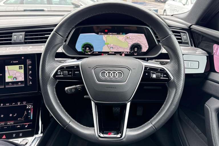 COMFORT & SOUND PACK ( POWER DOOR CLOSURE, HEAD UP DISPLAY, EXTENDED TWIN LEATHER PACK, AUDI BEAM, COMFORT REMOTE PRE CONDITIOING, EXTENDED LED LIGHTING PACK, BANG & OLUFSEN PREMIUM SOUND SYSTEM, BLACK ROOF RAILS ) CITY ASSIST PACK, DRIVER ASSISTANCE SYSTEM, VIRTUAL DOOR MIRRORS, ORANGE ETRON BRAKE CALIPERS, TOUR PACK, ADAPTIVE CRUISE ASSIST WITH EMERGENCEY ASSIST, FINE GRAIN ASH GREY INLAYS, FRONT SUPER SPORT SEATS, SATELLITE NAVIGATION, 360 CAMERA, PARKING AID PLUS, HEATED MULTI FUNCTION STEERING WHEEL, HILL HOLD ASSIST, AUDI VIRTUAL COCKPIT PLUS, LANE DEPARTURE WARNING, APPLE CARPLAY, ANDROID AUTO, DAB RADIO, TINTED WINDOWS - PRIVACY GLASS, FRONT AND REAR PARKING SENSORS, SPLIT FOLDING REAR SEATS, LIGHT & RAIN SENSOR, AUTO DIMMING REAR VIEW MIRROR, SELECTABLE DRIVING MODES, KEYLESS ENTRY WITH PUSH BUTTON START, MYTHOS BLACK METALLIC WITH LEATHER UPHOLSTERY, 22'' 5 SPOKE STRUCTURE ALLOY WHEELS, 4 ZONE CLIMATE CONTROL, POWERED/HEATED FRONT/REAR SEATS WITH DRIVERS SEAT MEMORY AND LUMBAR SUPPORT, DIGITAL MATRIX LED HEADLIGHTS WITH DYNAMIC REAR INDICATORS, VOICE ACTIVATED CONTROLS AND MUCH MORE.All Audi Approved used cars are offered with a 12-month warranty and roadside assistance.Portsmouth Audi are delighted to offer this Audi Etron Vorsprung in Mythos Black over Black Nappa Leather and has completed just 39093 miles., We are proud to be part of the Harwoods group, a family run business established in 1931. With four Approved Audi retailers within our group, we have access to over 400 vehicles. If this isn't the right car for you, please contact us and we will find it. Our group stock has spec to include Sunroof, Leather, Heated Seats, Apple Car Play, Heated Steering Wheel, Reverse Camera, Rear Entertainment, Towbar, 360-degree camera, Comfort & Sound Pack, Tech Pack, Panoramic Sun Roof, Tow Bar, Black Pack, Air Suspension, Apple Carplay, Adaptive Cruise, Massage Seats, Refrigerator, AWD, Technology Pack, Head up Display.