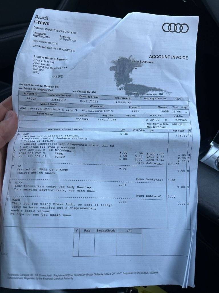 Posting for 11+ years2022 Audi e-tron 55 S line Sportback 5dr Electric Auto quattro 95kWh (11kW Charger) (408 ps) ESTA...