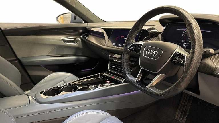 Finished in the illusive Kemora Grey this Audi e-tron GT Vorsprung is now available from Carlisle Audi. This striking electric car features the iconic Quattro Four Wheel Drive drivetrain and a substantial 93 kWh battery. When new this vehicle can travel a maximum range of 305 miles. For convenience, it can be fully charged at home using a 7kW charger in approximately 14 hours, or achieve an impressive 80% charge from empty in just 24 minutes at a compatible public charging station. Sitting on upgraded 20"" alloy wheels this e-tron stands out from the crowd. To the front of the vehicle is a set of Matrix LED Headlights with laserlights, designed to perfectly illuminate the road no matter your driving conditions. The Vorsprung trim level ensures a premium experience, the cabin comes equipped with electronically adjustable front seats with a memory function for the drivers side, allowing you to move your seat back into its perfect position at just the touch of a button. This vehicle also comes with Night Vision Assist and a Head-Up Display which projects important information such as your speed and the speed limit at eye level on your windscreen, allowing you to keep your eyes on the road as you travel. The sound system in this vehicle is the sublime Bang & Olufsen 3D Sound System, allowing you to listen to all your favourite music in stunning sound quality.