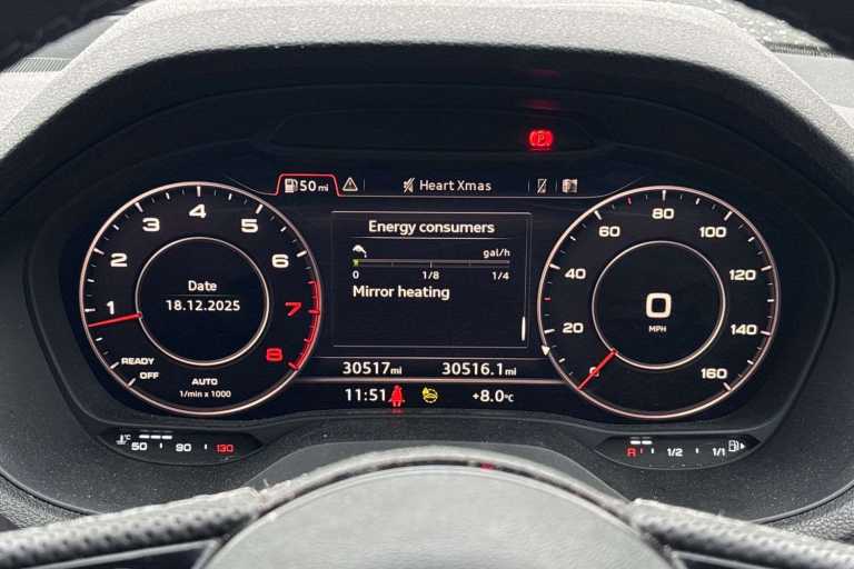 4-way lumbar support for the front seats (7P1), Ambient Lighting package (QQ1), Anti-theft alarm (7AL), Audi AG (A51), Audi pre sense front (6K2), Audi virtual cockpit (9S8), Cruise control (8T6), Daytime running lights (8K4), Hold assist (UH2), MMI Navigation plus with MMI touch (7UG), Parking system, rear (7X1)
