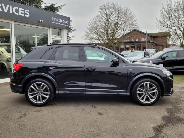** NATIONWIDE DELIVERY AVAILABLE - ROAD TEST APPOINTMENTS PREFERRED**** 5 STAR REVIEWS **This 2022 Audi Q3 TFSI Black Edition offers a superb blend of style and practicality, boasting a 1.5 litre Euro 6 petrol engine for efficient performance. The striking Black Edition trim is complemented by 19 inch alloy wheels with a matt titanium, diamond cut finish, and sophisticated LED headlights with dynamic rear indicators. Inside, you'll find a flat bottomed, leather trimmed multi function sport steering wheel and the convenience of the Audi Smartphone Interface, which seamlessly integrates wireless Apple CarPlay and Android Auto.Experience enhanced comfort and convenience with the Comfort and Sound Package. This includes front and rear parking sensors, a rear camera to aid manoeuvring, and a premium branded sound system for an immersive audio experience. The heated seats ensure a pleasant journey in all conditions, while the generous boot space provides ample room for luggage or shopping. With an acceleration of 0 to 62 miles per hour in just 9.5 seconds, this Q3 delivers responsive performance, making it a compelling choice for those seeking a refined and capable compact SUV.With over 50 years in the Motor Trade, Goscote Services continue to hold traditional values along with a modern approach to both selling and maintaining vehicles. We sell vehicles in a PRESSURE FREE MANNER and have NO HIDDEN FEES. We do ask customers to make an appointment before they travel if possible, so please contact our team who would be happy to help arrange a road test or discuss finance options and/or part exchange values. We have competitive finance options available and Click and Collect or Nationwide Delivery options are also offered.Our service department are also on hand for enquiries and bookings, and our aftersales facilities remain open to continue carrying out essential MOT, service and repair work Please do not hesitate to get in touch if you have any questions.