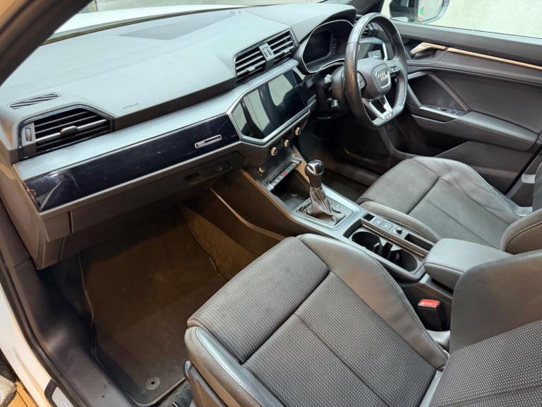 This 2022 Audi Q3 TFSI Black Edition is a superb example, having had only one owner since new. This stylish SUV boasts a 1.5 litre petrol engine, meeting Euro 6 emissions standards. It comes equipped with a Bluetooth interface for seamless connectivity, and striking LED headlights with integrated LED daytime running lights for enhanced visibility. The Audi Smartphone Interface offers wireless Apple CarPlay and Android Auto, keeping you connected on the go. Comfort is assured with dual zone electronic climate control, and the convenience of automatic headlights activated by a light and rain sensor.Experience the responsive performance of this Q3, with a 0-62mph acceleration time of just 9.4 seconds. These highlights demonstrate how this particular vehicle offers a superior driving experience compared to others in its class. The Black Edition trim adds a touch of sophisticated styling, making this Audi Q3 a compelling choice for those seeking a well maintained and feature rich compact SUV.