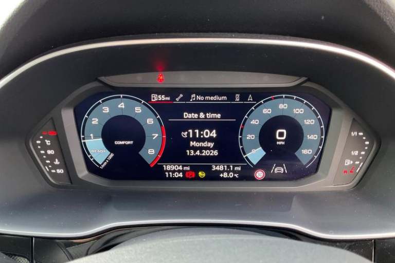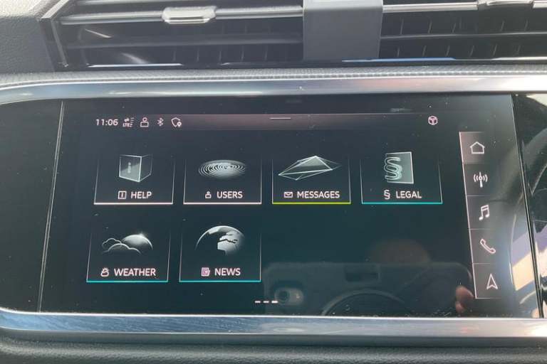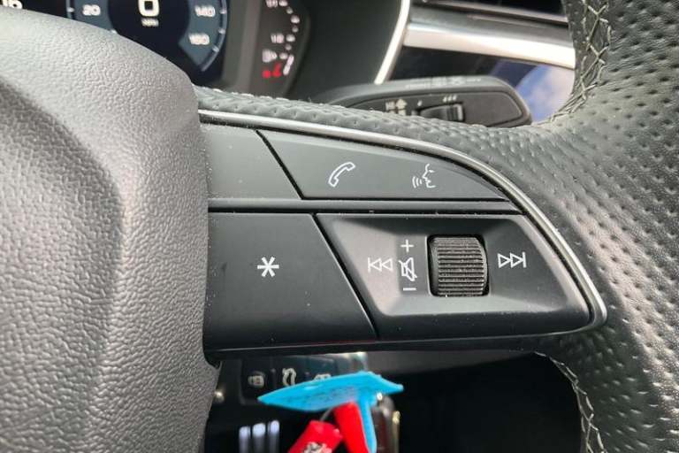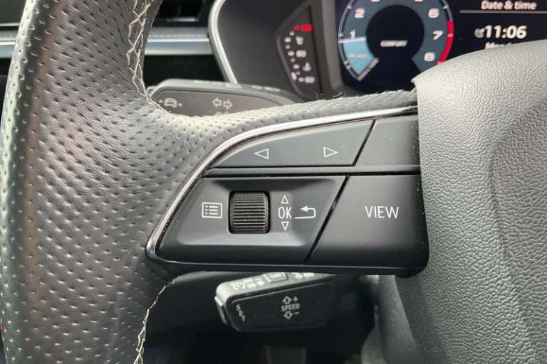 Amazon alexa Integration, Audi drive select, Audi lane departure warning, Audi Virtual Cockpit - 10.25 display, Bluetooth interface, Camera based traffic sign recognition, Cruise control + speed limiter, Legal emergency call, MMI Navigation Plus with high resolution 10.1 inch touchscreen colour display, Power operated tailgate, Progressive steering, Rear parking sensors, Service interval indicator, Smartphone interface includes wireless Apple carplay/Android Auto, Start stop system with recuperation, Voice control system with natural language interaction, Acoustic windscreen, Aluminium roof rails, Aluminium window trim, Anthracite black radiator grille, Auto dimming frameless rear view mirror, Body colour front spoiler blade, Body coloured bumpers, Electrically folding, adjustable and heated door mirrors with integrated LED side indicators and kerb view function for passenger side, Front and rear electric windows, Front fog lights, Front side air inlets in matt platinum grey, Grille vertical bars in aluminium silver/Matt, High gloss black finish B and C pillars, LED Dynamic rear indicators, LED headlights with LED daytime running lights, LED rear lights, LED third brake light, Privacy glass dark tinted rear and rear-side windows (from B-pillar backwards), Rain and light sensors, Rear diffuser grille in grained matt black, Rear diffuser strip in matt anthracite black, Rear side wing doors, Rear wiper, S line badges on front wings, S Line front and rear bumpers, Side skirt insert
