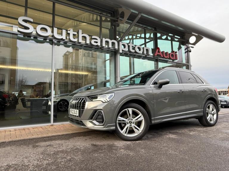 FULL AUDI SERVICE HISTORY, SONOS SOUND SYSTEM, HEATED FRONT SEATS, AMAZON ALEXA INTEGRATION, AUDI DRIVE SELECT, AUDI LANE DEPARTURE WARNING, AUDI VIRTUAL COCKPIT - 10.25'' DISPLAY, BLUETOOTH INTERFACE, CAMERA BASED TRAFFIC SIGN RECOGNITION, MMI NAVIGATION PLUS WITH HIGH RESOLUTION 10.1 INCH TOUCHSCREEN COLOUR DISPLAY, SMARTPHONE INTERFACE INCLUDES WIRELESS APPLE CARPLAY/ANDROID AUTO, SPORTS SUSPENSION, 2 USB-C PORTS WITH CHARGE AND DATA FUNCTIONS, 6 PASSIVE LOUDSPEAKERS, DAB DIGITAL RADIO MODULE, LED HEADLIGHTS WITH LED DAYTIME RUNNING LIGHTS, DUAL ZONE ELECTRONIC CLIMATE CONTROL, HILL HOLD ASSIST. ALL AUDI APPROVED USED CARS ARE OFFERED WITH A 12-MONTH WARRANTY AND ROADSIDE ASSISTANCE. AUDI SOUTHAMPTON ARE DELIGHTED TO OFFER THIS AUDI Q3 1.5 TFSI COD 35 S LINE SUV 5DR PETROL S TRONIC EURO 6 (S/S) (150 PS) IN GREY WITH 31,042 MILES. WE ARE, PROUD TO BE PART OF THE HARWOODS GROUP, A FAMILY RUN BUSINESS ESTABLISHED IN 1931. WITH FOUR APPROVED AUDI RETAILERS WITHIN OUR GROUP, WE HAVE ACCESS TO OVER 400 VEHICLES. IF THIS ISN'T THE RIGHT CAR FOR YOU OUR GROUP STOCK HAS SPECIFICATION TO INCLUDE SUNROOF, LEATHER, HEATED SEATS, APPLE CAR PLAY, HEATED STEERING WHEEL, REVERSE CAMERA, REAR ENTERTAINMENT, TOWBAR, 360-DEGREE CAMERA, COMFORT & SOUND PACK, TECH PACK, PANORAMIC SUN ROOF, TOW BAR, BLACK PACK, AIR SUSPENSION, APPLE CARPLAY, ADAPTIVE CRUISE, MASSAGE SEATS, REFRIGERATOR, AWD, TECHNOLOGY PACK, HEAD UP DISPLAY, VORSPRUNG, TECHNIK, BLACK EDITION, S-LINE, S LINE, EDITION 1, TFSI, QUATTRO, SPORTBACK, LWB. OTHER COLOUR OPTIONS INCLUDING BLACK, BLUE, GREEN, SILVER, WHITE, RED, GREY, YELLOW, ORANGE. INTERIOR OPTIONS OF EBONY, BLACK, IVORY, WHITE, TAN, CREAM, OYSTER, & EURO 6 ULEZ COMPLIANT DRIVE TRAINS.