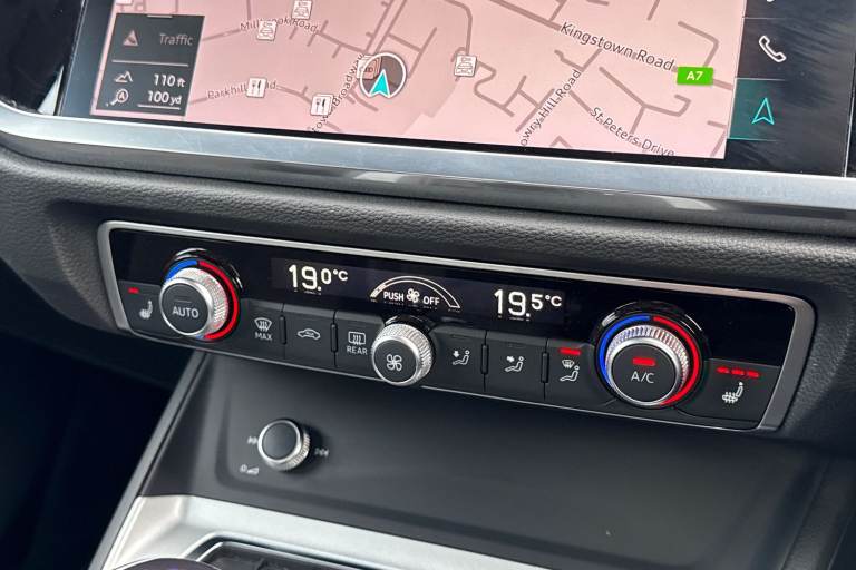 Carlisle Audi is pleased to introduce this Audi Q3 Sport, finished in the modern Navarra Blue. This vehicle comes fitted with a powerful 2.0 litre petrol engine paired with a four wheel drive system, ensuring confident handling in any conditions. With an impressive 190PS this Q3 can go from 0-62mph in a swift 7.3 seconds. To the front of the vehicle youll find a set of LED Headlights, designed to perfectly illuminate the road no matter your driving conditions. This vehicle comes with the Comfort & Sound pack, this includes Parking system plus as well as Rear-view camera system, making parking and manoeuvring a doddle. This pack also upgrades the sound system to the SONOS 3D premium sound system, allowing you to listen to all your favourite music in stunning sound quality. The Heated front seats are designed to keep you cozy no matter the weather outside. Inside, youll find a multifunction steering wheel that allows you to easily control your music, cruise control and Audi Virtual Cockpit. Here you can see information about your car, phone connectivity and navigation system, keeping you informed whilst youre on the move. The cabin comes with 2-zone climate control that allows both driver and passenger to pick their perfect temperature.