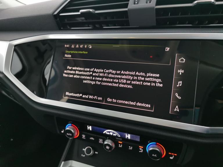 Experience the Audi Q3 a stylish blue SUV offering the best of hybrid technology with petrol plug-in convenience and smooth automatic drive. Enjoy top-notch entertainment with Apple CarPlay, upgraded sound, and MMI Navigation Plus. Drive with confidence thanks to LED headlights, reversing camera, and parking sensors. Stay comfortable with dual zone digital climate control and stay safe with lane departure warning, cruise control, and traffic sign recognition. Topped off with striking 17in alloy wheels and a digital driver display. 3 services recorded, last serviced on 25/01/2026 at 12,116 miles. MOT to 28/09/2026. Visit our website for service history, online valuation, full vehicle specification plus multiple images. Certain features listed may be available via subscription packages at extra costs, please consult with Audi for details. This vehicle is VAT qualifying. Any feature/option specified here is from 3rd party data. We cannot guarantee the accuracy of any specification supplied by a 3rd party. We recommend that you physically check the specification of the vehicle on site prior to purchase. This information does not form part of the buying contract. Terms & Conditions apply. We have over 2,000 cars available from our 10 national branches, check our website to see all our stock. Our Trustpilot rating is 4.4/5 with over 9,000 reviews.
