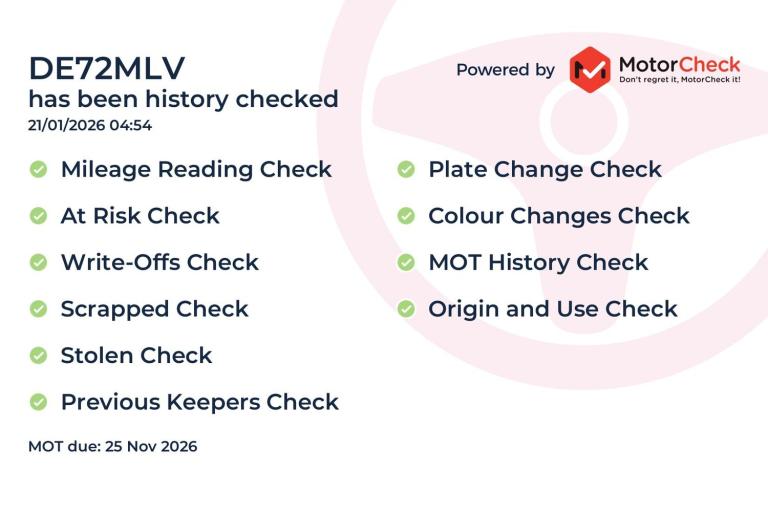 Our vehicle history check is provided for guidance only. Please check all the details with the seller before purchasing