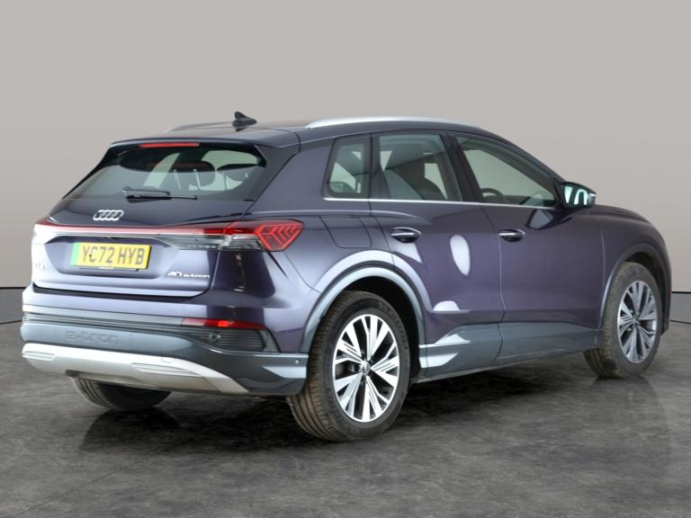 Experience the Audi Q4 E-tron Sport, an electric SUV in stunning purple. Enjoy premium touches like MMI Navigation Plus, Apple CarPlay, and an upgraded sound system. LED headlights light your way, while heated seats and a reversing camera add comfort and convenience. Stay connected with Bluetooth audio streaming and drive relaxed with lane departure warning and cruise control. Including driving modes and traffic sign recognition, this Q4 E-tron is perfect for those who want innovation and style in every journey. 2 services recorded, last serviced on 11/06/2025 at 30,036 miles. MOT to 24/10/2026. Visit our website for service history, online valuation, full vehicle specification plus multiple images. Certain features listed may be available via subscription packages at extra costs, please consult with Audi for details. This vehicle is VAT qualifying. Any feature/option specified here is from 3rd party data. We cannot guarantee the accuracy of any specification supplied by a 3rd party. We recommend that you physically check the specification of the vehicle on site prior to purchase. This information does not form part of the buying contract. Terms & Conditions apply. We have over 2,000 cars available from our 10 national branches, check our website to see all our stock. Our Trustpilot rating is 4.4/5 with over 9,000 reviews.
