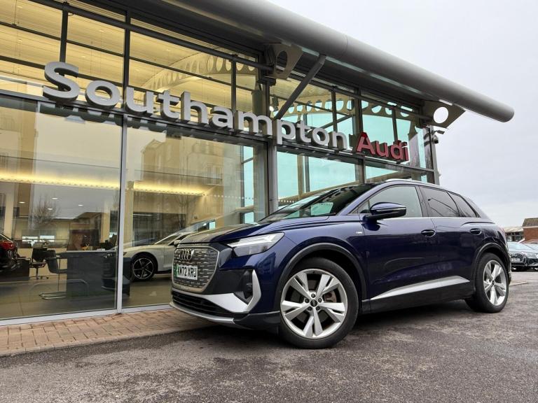 FULL AUDI SERVICE HISTORY, AUDI DRIVE SELECT, AUDI SMARTPHONE INTERFACE WITH WIRELESS FUNCTIONALITY, AUDI VIRTUAL COCKPIT - 10.25'' DISPLAY, BLUETOOTH INTERFACE, CAMERA BASED TRAFFIC SIGN RECOGNITION, LANE DEPARTURE WARNING SYSTEM, MMI NAVIGATION PLUS WITH HIGH RESOLUTION 11.6 INCH TOUCHSCREEN COLOUR DISPLAY, 2 USB-C PORTS WITH CHARGE AND DATA FUNCTIONS, AUDI SOUND SYSTEM WITH 8 SPEAKERS, DAB DIGITAL RADIO, 3 ZONE AUTOMATIC AIR CONDITIONING, HEATED FRONT SEATS, KEYLESS GO ALL AUDI APPROVED USED CARS ARE OFFERED WITH A 12-MONTH WARRANTY AND ROADSIDE ASSISTANCE. AUDI SOUTHAMPTON ARE DELIGHTED TO OFFER THIS AUDI Q4 40 S LINE SUV 5DR ELECTRIC AUTO 82KWH (204 PS) IN BLUE WITH 34,461 MILES. WE ARE, PROUD TO BE PART OF THE HARWOODS GROUP, A FAMILY RUN BUSINESS ESTABLISHED IN 1931. WITH FOUR APPROVED AUDI RETAILERS WITHIN OUR GROUP, WE HAVE ACCESS TO OVER 400 VEHICLES. IF THIS ISN'T THE RIGHT CAR FOR YOU OUR GROUP STOCK HAS SPECIFICATION TO INCLUDE SUNROOF, LEATHER, HEATED SEATS, APPLE CAR PLAY, HEATED STEERING WHEEL, REVERSE CAMERA, REAR ENTERTAINMENT, TOWBAR, 360-DEGREE CAMERA, COMFORT & SOUND PACK, TECH PACK, PANORAMIC SUN ROOF, TOW BAR, BLACK PACK, AIR SUSPENSION, APPLE CARPLAY, ADAPTIVE CRUISE, MASSAGE SEATS, REFRIGERATOR, AWD, TECHNOLOGY PACK, HEAD UP DISPLAY, VORSPRUNG, TECHNIK, BLACK EDITION, S-LINE, S LINE, EDITION 1, TFSI, QUATTRO, SPORTBACK, LWB.? OTHER COLOUR OPTIONS INCLUDING BLACK, BLUE, GREEN, SILVER, WHITE, RED, GREY, YELLOW, ORANGE. INTERIOR OPTIONS OF EBONY, BLACK, IVORY, WHITE, TAN, CREAM, OYSTER, & EURO 6 ULEZ COMPLIANT DRIVE TRAINS.?