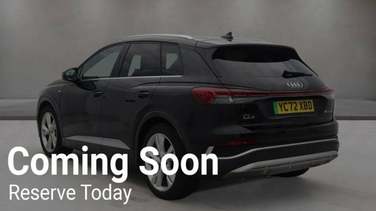 Why This Audi Q4 e-tron Wins? This 2022 Audi Q4 e-tron S line is a superb example of premium electric motoring, having been carefully maintained by just one owner from new. Powered by a substantial 82 kWh battery, it offers an impressive range of up to 312 miles when new — giving you the confidence to handle daily commutes and longer motorway journeys with ease. The S line trim enhances its road presence with sharper styling and a sportier edge, perfectly complementing Audis refined and futuristic design. Inside, the technology is just as impressive. LED headlights with LED daytime running lights provide crisp visibility and a distinctive look, while the Audi Smartphone Interface with Apple CarPlay and Android Auto keeps you seamlessly connected. Bluetooth connectivity makes calls and streaming effortless, and 3-zone electronic climate control ensures tailored comfort for all passengers. With a large, practical boot space, this Q4 e-tron is built for real-world usability as well as executive comfort. Charging is straightforward and flexible — around 11 hours 30 minutes for a full charge using a 7kW home charger, or as little as 30 minutes to reach 80% on a rapid public charger. Its an electric SUV that blends innovation, practicality, and premium quality in one compelling package. Your Peace of Mind? - Clear vehicle history check - Optional 3-36-month extendable warranties - Free 12-month AA roadside assistance - Fully prepared to showroom standard with its existing MOT and servicing, and we can organise any further MOT or service enhancements at your request. - Drive Away, Insurance Available - No hidden or extra costs, like admin fees Autotraders 2024 Insights: Top 3 Q4 e-tron Buyer Priorities: - Long electric range with fast charging capability - Premium interior comfort and advanced technology - Practical SUV space with low running costs - This Q4 e-tron delivers on every priority — outstanding range from its 82 kWh battery, rapid charging convenience, luxury-level comfort, and generous practicality. Compared to many rivals, it offers stronger range capability and Audis renowned build quality, making it a standout electric SUV choice. Stress-Free Next Steps: - Free Part Exchange Valuation - £0 Deposit Car Finance - Includes free credit checker - Reserve for £99 - Fully refundable.135kW DC Charging Capability, 2 USB-C Ports with Charge and Data Functions, Audi Connect Navigation and Infotainment Services Plus (3 Year Subscription From New), Audi Connect Safety and Service - e-call, Audi Smartphone Interface, Audi Sound System, Bluetooth Interface, DAB Digital Radio, MMI Navigation Plus with High Resolution 11.6in Touchscreen Colour Display, 20in Alloy Wheels - 5-Y-Spoke, AC and DC Charging access Point on the Rear Right, Aluminium Roof Rails, Anti Theft Locking Wheel Bolts, Contrast Bumpers in Manhattan Grey Paint Finish, Electric Windows - Front, Folding Door Mirrors with Auto-Dimming Function for Both the Drivers and Passengers Side Electrically Folding - Adjustable and Heated with Built-In LED Side Indicators and Kerb-View Function for Passenger Side, Privacy Glass - Dark Tinted Rear Window - Rear Door Windows and Rear Side Windows, S Line Badges on Front Wings, S Line Exterior Styling, Single Frame Grille with a Structured Closed Surface with an Octagonal Shape, Windscreen with Acoustic Glass, Comfort and Sound Package, Technology Package, 3-Zone Electronic Climate Control, 4-Way Electric Lumbar Support for Front Seats, Aluminium Look Interior Elements, Ambient Lighting Pack, Audi Virtual Cockpit - 10.25in Display, Auto Dimming and Frameless Rear View Mirror, Cloth Headlining in Black, Comfort Auxiliary Air Conditioning, Front Centre Armrest, Front Door Sill Trims with Aluminium Inlay - Illuminated with S Logo, Front Seats Manually Adjustable, Front and Rear Floor Mats, Heated Front Seats, Industry Plug CEE 32 A-230 V Long and Straight, Inlays - Darkened Matt Brushed Aluminium, Keyless Go, Non-Smoking Package, Pedals in Stainless Steel, Power Operated Tailgate, Split Folding Rear Seat Bench - 60-40 or Fully, Steering Wheel - Grips in Perforated Leather - Trim in Chrome Look - S Emblem and Contrast Stitching, Tool Kit, Dinamica Microfibre - Leatherette - S Embossed Sports Seats - Black with Rock Grey Stitching, Mythos Black, 11 kW Onboard Charger, Household Plug Type G - GB, LED Headlights with LED Daytime Running Lights, LED Rear Lights, Mode 3 Type 2-AC Charging Cable 22kW, Progressive Steering, Projection Light in the Exterior Mirrors, Sport Suspension, ABS - Anti-Lock Braking System, Active Vehicle Alerting System - AVAS, Anti-Theft Alarm, Audi Drive Select, Audi Pre-Sense Front with Pedestrian and Cyclist Recognition, Camera Based Traffic Sign Recognition, Compact e-tron Charging System, Cruise Control with Speed Limiter, Dr