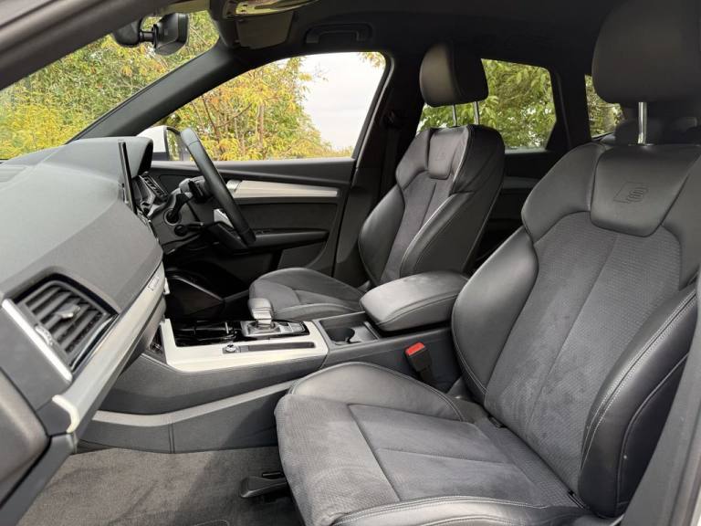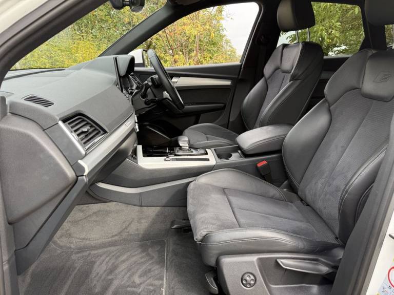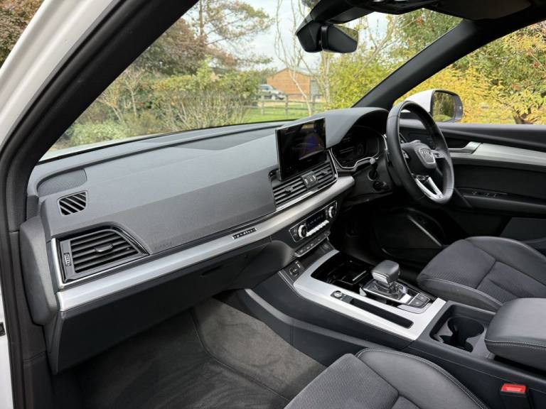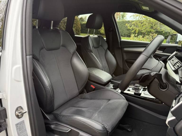 AUDI Q5 2.0 TFSI 45 S line SUV 5dr Petrol S Tronic quattro Euro 6 (s/s) (265 ps) Appointment only..19in Alloy Wheels - 5-Twin-Spoke Star Design - Diamond Cut Finish, 2 USB Charging Ports -1 x USB-A and 1 x USB-C Port, 3-Spoke Multi-Function Leather Steering Wheel with Grips in Perforated Leather and S Badging, 6-Airbag System, Air Vents - Inserts and Centre Console in Gloss Black, Aluminium Roof Rails, Anti Theft Locking Wheel Bolts, Anti-Theft Alarm, Audi Connect Navigation and Infotainment Services Plus - 3 Year Trial, Audi Connect Safety and Service, Audi Connect with Amazon Alexa Integration, Audi Drive Select, Audi Pre-Sense City, Audi Virtual Cockpit Plus - 12.3in Screen and Three Different Layout Designs, Audi Wireless Smartphone Interface, Auto Dimming and Frameless Rear View Mirror, Automatic Headlight Adjustment, Automatic Headlight and Windscreen Wiper Activation, Automatic Start-Stop with Coasting Functionality and Efficiency Programme, Bluetooth Interface, Body Coloured Door Mirrors, Chrome-Plated Exhaust Trim, Cloth Headlining in Black, Comfort Front Centre Armrest - Height Adjustability and Slide Function, Contrast Stitching on Seats - Steering Wheel and Gear Lever Gaiter, Cruise Control System with Speed Limiter, DAB Digital Radio, Deluxe 3-Zone Electronic Climate Control, Door Mirrors - Electrically Folding and Heated and Auto Dimming, Door Sills in Selenite Silver, Electric Child Locks for Rear Doors, Electric Windows - Front, Electromechanical Parking Brake, Electromechanical Power Steering, ESC - Electronic Stabilisation Control inc ABS - ASR and EDL, First Aid Kit and Warning Triangle and Safety Vests, Front Air Inlet Surrounds in Aluminium, Front and Rear Floor Mats, Front and Rear Parking Sensor with Acoustic Warning, Front Radiator Grille in Honeycomb Design, Gear Lever in Black Leather, Headlight Washers, Heated Front Seats, High Gloss Package, Hill Descent Control, Hill Hold Assist, Ibis White, Illuminated Door Sill Trims with S Logo - Front, Inlays - Matt Brushed Aluminium, ISOFIX Child Seat Mounting for Front Passenger and Outer Rear Seats - including Top Tether Attachment for the Outer Rear Seats, Keyless Go, LED Interior Lighting Pack, Lower Bumper Painted in Contrast Manhattan Grey, Manual Seat Adjustment with 4-Way Electric Lumbar Support, Matrix LED Headlights with Dynamic Front and Rear Indicators, MMI Navigation Plus with 10.1in Touchscreen, Multi Collision Brake Assist, Pedals in Stainless Steel, Pop-Up Bonnet for Pedestrian Protection, Power Operated Tailgate, Privacy Glass - Rear and Rear-Side Windows, quattro On De