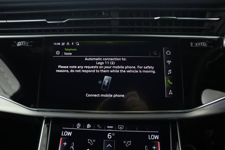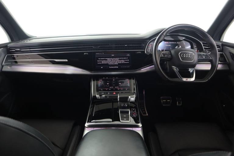 This 2022 Audi Q7 TFSI V6 S line is a superb example, having had only one owner since new. This impressive seven seater SUV boasts a powerful 3.0 litre petrol engine and a smooth four wheel drive system, making it a capable and refined choice. It meets Euro 6 emission standards and offers a substantial towing weight of 3500 kg. Inside, youll find comfort and convenience with heated front seats, a rear view camera for easier parking, and a 2 zone automatic climate control system to keep everyone comfortable. The advanced LED headlights provide excellent visibility, and the Bluetooth interface allows for seamless connectivity on the go. This Audi Q7 stands out with its impressive performance, achieving 0 to 62 miles per hour in just 5.9 seconds, demonstrating its dynamic capabilities. The large boot space ensures you have ample room for luggage or shopping, making it a practical choice for families and adventurers alike. Furthermore, its placement in a low insurance group indicates that running costs are kept manageable, offering excellent value. These highlighted features collectively show how this Q7 offers a superior experience compared to other vehicles in its class..2-Zone Automatic Climate Control, 20in Alloy Wheels - 9J 5-Spoke-Turbine Design - Aluminium, 7 Seats, AMI - Audi Music Interface, Adaptive Air Suspension, Airbags - Driver - Front Passenger - Front Side - Curtain, Aluminium Roof Rails, Aluminium Window Trims, Anti-Theft Alarm, Anti-Theft Wheel Bolts and Wheel Loosening Warning, Audi Connect (3 Year Subscription From New), Audi Connect Safety and Service - e-call, Audi Connect with Amazon Alexa Integration, Audi Drive Select, Audi Hill Hold Assist, Audi Parking System Plus, Audi Pre-Sense Front, Audi Smartphone Interface, Audi Sound System, Audi Virtual Cockpit, Auto Dimming and Frameless Rear View Mirror, Body Coloured Door Mirrors, Camera-Based Traffic Sign Recognition, Cloth Headlining in Black, Comfort Front Centre Armrest, Cruise Control with Speed Limiter, DAB Digital Radio, Door Mirrors - Heated - Electrically Adjustable - Folding and Auto Dimming with Memory Function, ESC - Electronic Stabilisation Control inc ABS - ASR and EDL, Electric Windows - Front and Rear, Electromechanical Parking Brake, Electromechanical Power Steering, Extended Pedestrian Protection Measures, First Aid Kit and Warning Triangle, Front Sun Visors with Illuminated Vanity Mirrors, Front and Rear Floor Mats, Fuel Tank 85L, Heated Front Seats, High Beam Assist, Illuminated Door Sill Trims with S Logo, Inlays - Darkened Matt Brushed Aluminium, Keyless Go with Remote Central Locking, LED Daytime Running Lights, LED Interior Ambient Lighting Pack, LED Rear Lights, Lane Departure Warning, Luggage Compartment Cover, Luggage Compartment Sill Protection in Stainless Steel, MMI Navigation Plus with MMI Touch, Natural Voice Recognition, Pedals in Stainless Steel, Power Operated Tailgate, Privacy Glass, Rear View Camera, S Line 3-Spoke Leather Trimmed Multi Function Steering Wheel with Paddles, S Line Badges on the Front Wings, S Line Bumpers in Full Body-Colour Paint Finish, S Line Roof Spoiler, S Line Styling Side Ventilation Grille and Side Skirts, Seat Belt Monitoring, Tool Kit, Tyre Pressure Loss Indicator, Tyre Repair Kit, Windshield with Heat Insulated Glass, Bluetooth Interface, LED Headlights