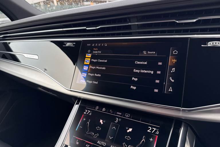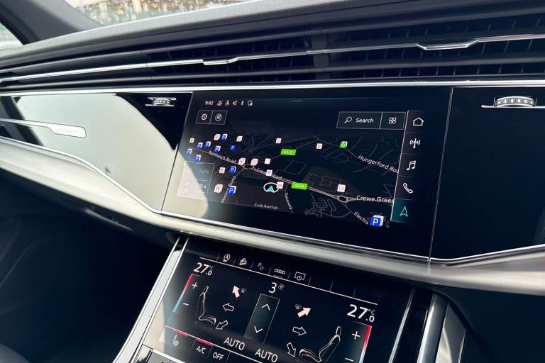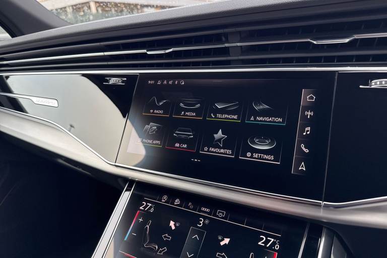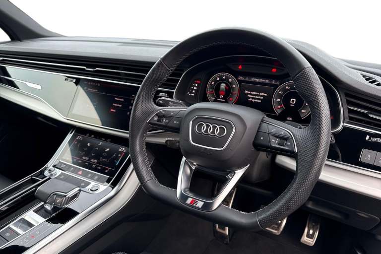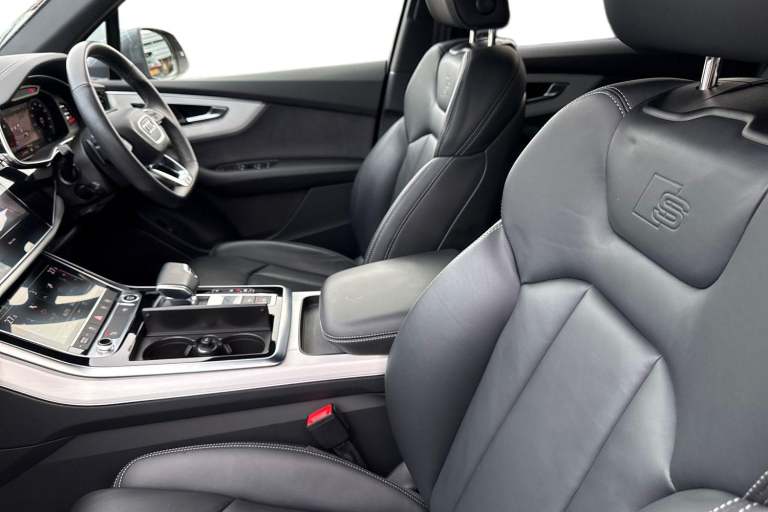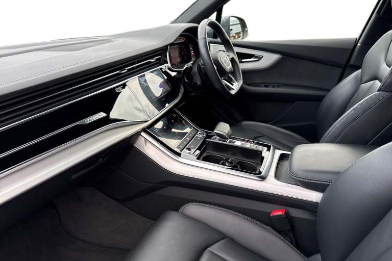 Check out this Audi Approved Q7 S Line 55 TFSI Quattro in Daytona Grey with its optional 21"" 5-twin spoke design alloy wheels which look stunning out on the roads. The LED headlights with LED rear lights create that strong visibility in all weather conditions. Inside, youll find luxurious heated front seats which are perfect for those cooler mornings. Another brilliant feature, is the multi function camera which creates that additional vision and assists greatly whilst maneuvering those tighter spaces. The privacy glass creates that additional privacy for passengers on all journeys in this Q7. Comfort is maximised behind the wheel, thanks to the 4-way lumbar support. The interior is fitted with Valcona leather sports seats, which provide that additional comfort. Connectivity is made seamless thanks to the Bluetooth Interface. Another great addition, is the power operated tailgate which is especially convenient when you have your hands full. ISOFIX child seat anchors are fitted to this Q7, making it the perfect family vehicle. On the multimedia interface, you can access a variety of different media, such as Apple Carplay and Android Auto, allowing you to use apps like Spotify, Google Maps, Apple Music and other apps also. The Audi drive select feature lets you choose your prefered drive mode on any journey, for a more personalised driving experience. The driver assist can also be adjusted to your driving preference on any journey. DAB/FM radio is fitted to this vehicle...