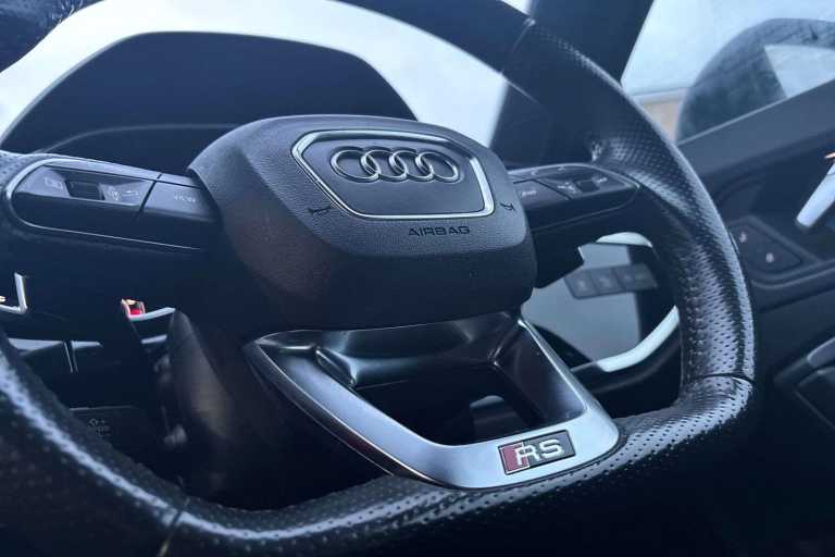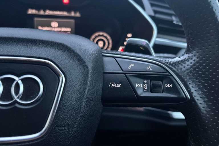Ambient Lighting package plus (QQ2), Audi drive select (2H4), Black Styling package plus (4ZP), Darkened Matrix LED headlamps with dynamic turn signal (8JT), Front spoiler (5L5), Inlays, piano finish look Black, Audi exclusive (5TL), Matrix LED headlights with dynamic turn signal (8G4), Panoramic glass roof (3FU), Reversing camera (KA2), Roof rails in black (3S2), RS sport exhaust system (0P6), RS sport suspension plus with damper control (1JT), SONOS 3D premium sound system (9VS), Audi connect remote & control (for MMI navigation plus) (EL5), Audi pre sense front (6K2), Audi smartphone interface (UI2), Audi virtual cockpit plus (9S8), Downhill assist (UG5), Hold assist (UH2), ISOFIX and top tether for outer rear seats (3B4), Light/rain sensor (8N6), Parking system plus (7X2), Seat heating, front (4A3), Sport seats plus, front (Q4Q), Start-stop system with recuperation (7L6)