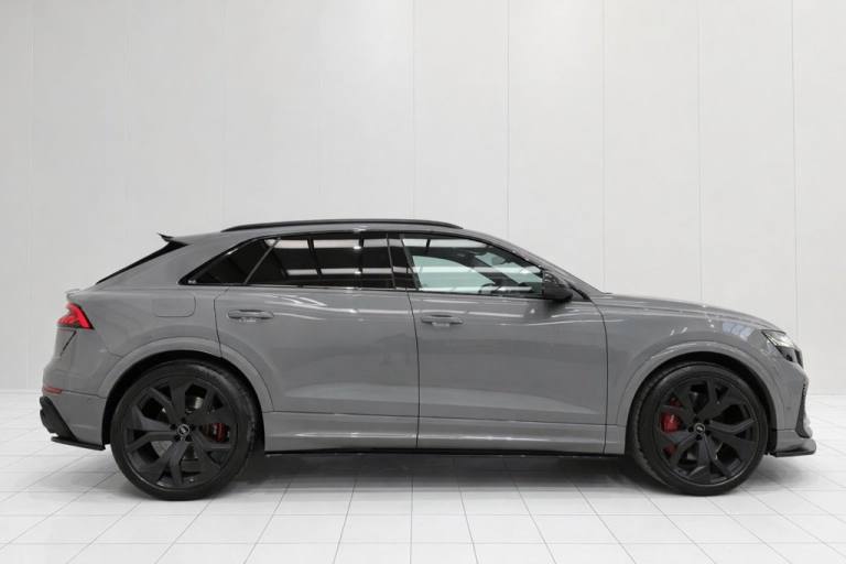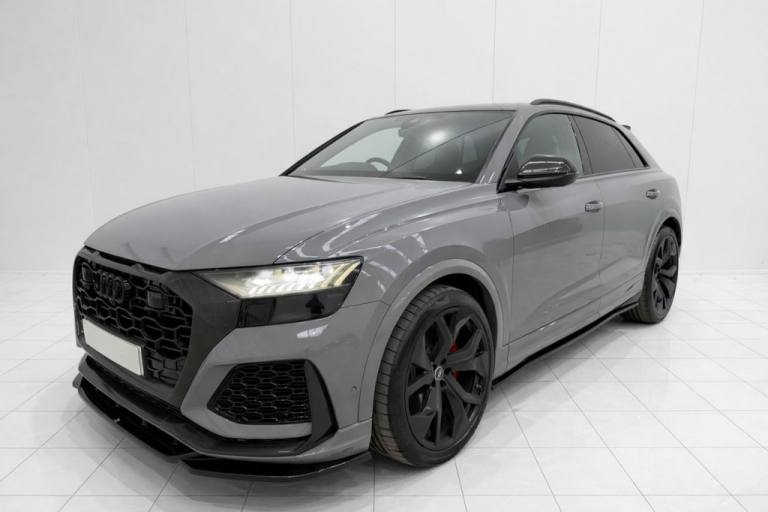 JUST INTO STOCK IS THIS STUNNING AUDI RSQ8 CARBON BLACK FINISHED IN EXCLUSIVE NARDO GREY, THIS VEHICLE IS EXTREMELY HIGH SPECIFICATION SOME OF WHICH INCLUDES THE FOLLOWING -DIAMOND STITCHED QUILTED LEATHER -BANG AND OLUFSEN SOUND SYSTEM -2 KEYS -REAR TVS -HEATED SEATS -ALCANTARA STEERING WHEEL -AIR SUSPENSION -MAXTON DESING BODY KIT -CARBON EXTERIOR FRONT GRILL AND REAR DIFFUSER -CARBON INTERIOR -750BHP REMAP -CUSTOM EXHUAST SYSTEM -BRAND NEW ALTERNATOR JUST FITTED BY AUDI -REAR VIEW CAMERA -PLUS LOADS MORE!! .Perforated Valcona Leather - Super Sport Seats - Black with Black Stitching, Audi Exclusive, Nardo Grey, RS Styling Pack - Red, RS 3-Spoke Heated Leather Multi-function Sport Steering Wheel with RS Mode Button, Comfort and Sound Package, Headlining - Black Alcantara, Red Paint Brake Calipers with RS Logo, Exclusive Paint Identifier, Black Roof Rails, 23in Alloy Wheels - 5-Y-Spoke Rotor Design - Gloss Black, 4-Way Lumbar Support for Front Seats, 4-Zone Automatic Air Conditioning, AMI - Audi Music Interface, Advanced Key, Air Quality Pack, All-Wheel Steering, Anthracite Black Styling Pack, Anti-Theft Alarm with Tow-Away Protection, Anti-Theft Wheel Bolts and Wheel Loosening Warning, Audi Beam, Audi Connect (3 Year Subscription From New), Audi Connect Safety and Service - e-call, Audi Connect with Amazon Alexa Integration, Audi HD Matrix LED Headlights in RS Specific Design with Dynamic Front and Rear Indicators, Audi Music Interface in the Rear, Audi Pre-Sense Front, Audi Smartphone Interface, Audi Sound System, Audi Virtual Cockpit - 12.3in High Resolution LCD Display, Auto Dimming and Frameless Rear View Mirror, Black Cloth Headlining, Carbon Door Mirrors, Carbon Styling Package, Comfort Front Centre Armrest, Cruise Control with Speed Limiter, DAB Digital Radio, Door Mirrors - Electrically Adjustable - Heated - Folding - Automatically Dimming with Memory Function and Integrated LED Indicators with Kerb View Function for Passenger Side, Double Sun Visor, Driver - Front Passenger - Front Side and Curtain Airbag System, Driver and Front Passenger Memory Function for the Electrically Adjustable Front Seats, ESC - Electronic Stabilisation Control inc ABS - ASR and EDL, Electric Sunblinds for the Rear Side Windows and Manual Sunblind for the Rear Window, Electric Windows - Front, Electromechanical Active Roll Stabilisation, Electromechanical Parking Brake, Electromechanical Power Steering, Extended LED Interior Lighting Package - Multi-Coloured, Exterior Audi Rings and RS Q8 Logos with Gloss Black Finish, First Aid Kit and Warning Triangle, Front Seat Ventilation, Headlight Washers, Heated Front Seats, Hill Descent Control, Hill Hold Assist, ISOFIX Child Seat Mounting for Front Passenger, Illuminated Door Sill Trims with RS Logo, Inlays - Carbon Twill, Lane Departure Warning, Light and Rain Sensor, Luggage Compartment Sill Protection in Stainless Steel, MMI Navigation Plus including MMI Touch, Natural Voice Recognition, Operating Buttons in Black - Glass Look, P