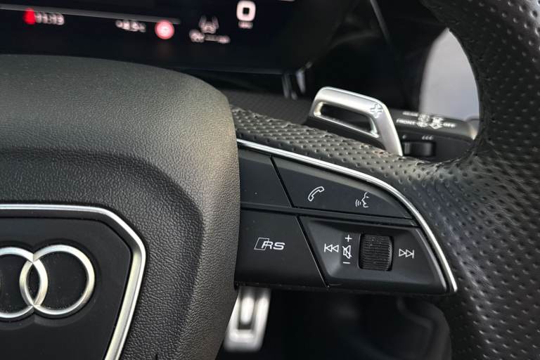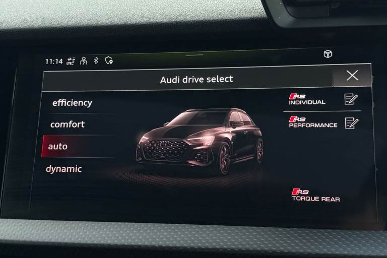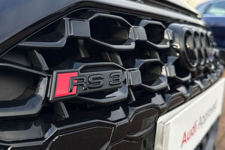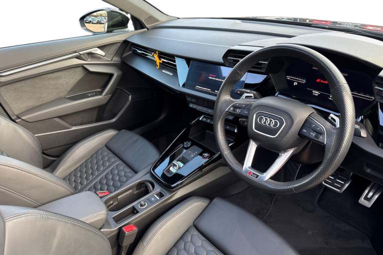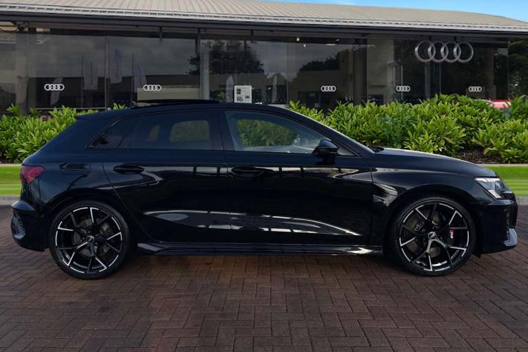 Commanding attention from the very first glance, this Audi RS3 Sportback Vorsprung is finished in striking Metallic Mythos Black, a colour that perfectly complements its aggressive stance and precision design. Compact yet unmistakably purposeful, it delivers a presence that sets it apart in any setting. At its core lies Audis legendary 2.5-litre petrol engine, paired with a smooth and responsive automatic transmission. This powertrain provides exhilarating performance while maintaining the refinement and control expected from the RS line, making every drive engaging whether in the city or on open roads. Inside, the cabin is elevated by a panoramic glass sunroof that floods the interior with natural light, creating an open and premium atmosphere. The Bang & Olufsen premium sound system with 3D sound delivers an immersive audio experience, ensuring exceptional clarity and depth for every journey. Advanced technology is seamlessly integrated, including a head-up display that projects key driving information directly into your line of sight, and a reversing camera that enhances visibility and confidence when manoeuvring. Comfort and convenience are equally well considered. The front seats are electrically adjustable, with a memory function for the drivers seat, allowing for effortless personalisation. Four-way lumbar support for the front seats ensures optimal support and comfort, even on longer drives, reinforcing the RS3s balance of performance and everyday usability....