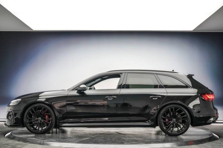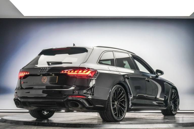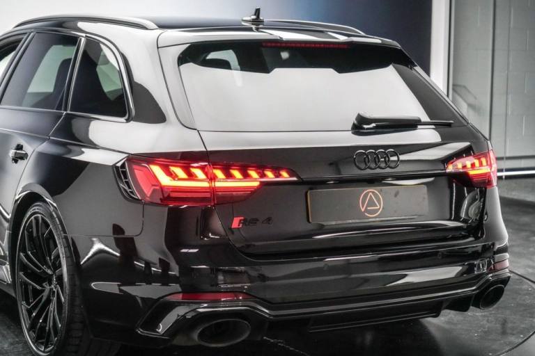This Audi RS4 Avant 2.9 V6 Carbon Black Edition Estate is finished in Mythos Black! FEATURES - RS Sport Exhaust System Carbon Black Styling Pack 20in Alloy Wheels - 9.0J 5-Segment-Spoke - Evo Style Design - in Glossy Black Red Brake Callipers in High-gloss Finish with RS Logo Audi Virtual Cockpit with RS Specific Display Matrix LED Headlights with LED Rear Lights and Dynamic Front and Rear Indicators Cruise Control System with Speed Limiter Door Mirrors - Heated-Electrically Adjustable-Folding and Auto Dimming LED Interior Lighting Pack Heated Front Seats Electrically Adjustable Massage Front Seats Privacy Glass with Rear Acoustic Glazing Power Operated Tailgate Parking System Plus - Front and Rear Sensors MMI Navigation Plus including MMI Touch Rear View Camera. HISTORY - Audi Digital Service History - 15.11.2024 oil change service @ 8054 miles. 08.05.2025 oil change service @ 10379 miles. **Autothentics Exceptional Approved Used Vehicle Preparation** We take immense pride in ensuring that every vehicle meets the highest standards of quality, reliability, and presentation. Every approved vehicle is meticulously handpicked and undergoes a comprehensive mechanical and cosmetic inspection by our team of experts. No vehicle leaves our premises unless it meets our exacting standards. This includes a new MOT and scheduled servicing. For complete peace of mind, a 6-month nationwide warranty and breakdown cover is included, with the flexibility to upgrade to an impressive 36-month plan. Our professional on-site detailing studio offers premium ceramic coating packages to enhance and protect your vehicles finish. Financing your dream vehicle is also straightforward, with packages tailored to suit your budget. You can enjoy competitive rates from as low as 8.9% APR. We dont just sell vehicles - we deliver beyond expectation! Admin fees apply, please see our T&Cs..RS Sport Exhaust System, Carbon Black Styling Pack, Red Brake Callipers in High-gloss finish, Audi Virtual Cockpit with RS Specific D, Matrix Directional LED Headlights, Mythos Black, Red Brake Calipers in High-gloss Finish with RS Logo at the Front, RS Sport Exhaust System, 2 USB Charging Ports, 20in Alloy Wheels - 9.0J 5-Segment-Spoke - Evo Style Design - in Glossy Black - Audi Sport, 6-Airbag System, Anti Theft Locking Wheel Bolts, Anti-Theft Alarm, Audi Beam, Audi Connect Infotainment Services (36 Month Subscription From New), Audi Connect with Amazon Alexa Integration, Audi Pre-Sense City, Audi Rings and Lettering - Glossy Black, Audi Side Assist, Audi Smartphone Interface, Audi Sound System, Audi Virtual Cockpit with RS Specific Display, Auto-Dimming Rear-View Mirror, Black Cloth Headlining, Black Roof Rails, Bluetooth Interface, Carbon Black Styling Pack, Cruise Control System with Speed Limiter, DAB Digital Radio Reception, Deluxe 3-Zone Electronic Climate Control, Door Handles - Body Coloured, Door Mirrors - Heated-Electrically Adjustable-Folding and Auto Dimming with Built-in LED Side Indicators and Kerb-view on Passenger Side, Door Mirrors - High-Gloss Black Housing, Door Sill Trims - Illuminated with RS4 Logo, ESC - Electronic Stabilisation Control inc ABS - ASR and EDL, Electric Load Area Cover, Electric Windows - Front and Rear, Electrically Adjustable Front Seats, Electromechanical Power Steering, Email - Calendar and Text Messages can be Displayed on your Vehicles MMI, First Aid Kit and Warning Triangle, Front Centre Armrest, Front and Rear Floor Mats, Heated Front Seats, Hill Hold Assist, ISOFIX Child Seat Mounting and Top Tether, Inlays - Carbon Twill, Keyless Go, LED Interior Lighting Pack, Leather Door Armrests and Knee Pad, Leather Steering Wheel in 3-spoke Design with Multifunction Plus and Steering Wheel Heating with RS badging, Light and Rain Sensor, MMI Navigation Plus including MMI Touch, Matrix LED Headlights with LED Rear Lights and Dynamic Front and Rear Indicators, Multi Collision Brake Assist, Parking System Plus - Front and Rear Sensors, Pedals in Stainless Steel, Pneumatic Massage Function, Pop-up Bonnet, Power Operated Tailgate, Privacy Glass with Rear Acoustic Glazing, Quattro Sports Differential, RS 4 Badges on Grille - Front Wing Panels and Rear, RS 4 Dual-branch Chrome Tailpipes with Large Oval Pipes Each on Left and Right, RS Audi Drive Select, RS Body Styling, RS Model Enhanced Braking System, RS Sports Suspension,