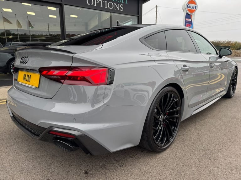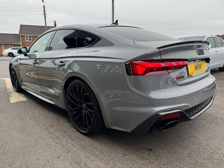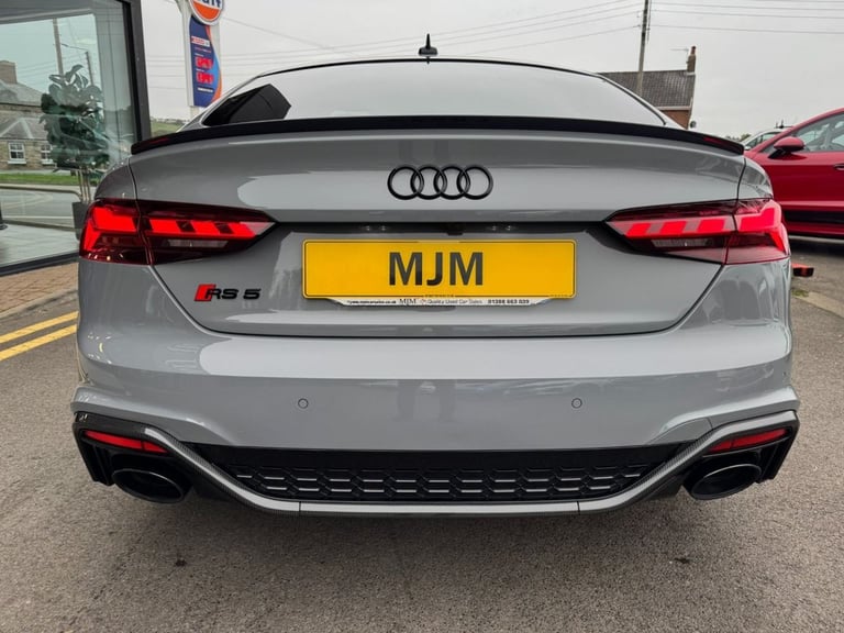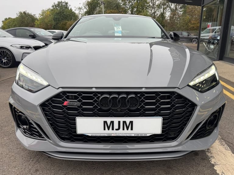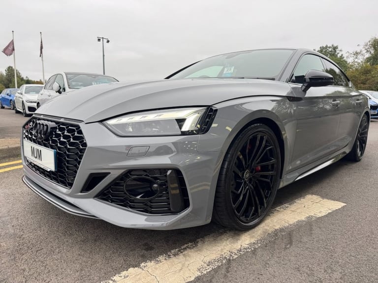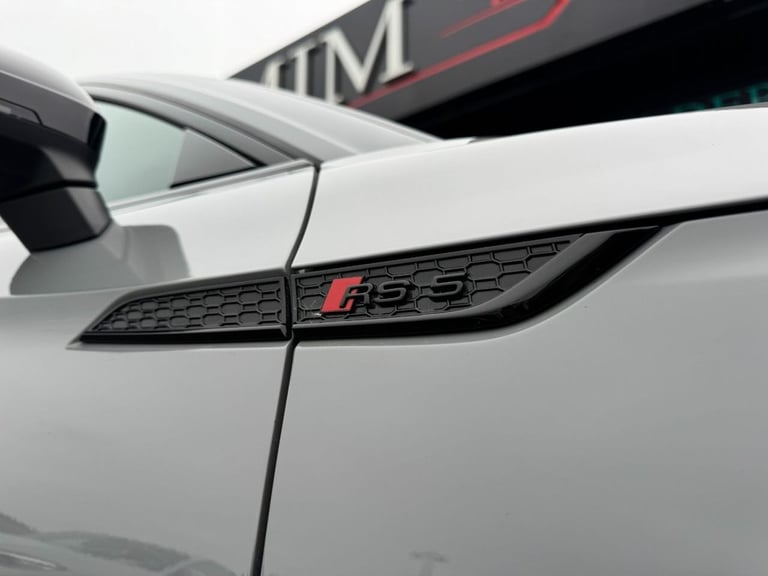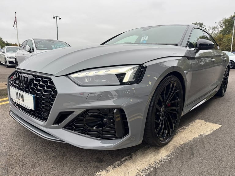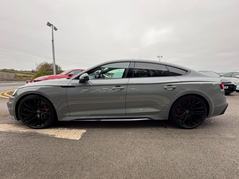 AUDI RS5 2.9 TFSI V6 CARBON BLACK SPORTBACK 5DR PETROL TIPTRONIC QUATTRO EURO 6 (450 PS) - A TRULY STUNNING EXAMPLE FINISHED IN ICONIC NARDO GREY, OFFERING A PERFECT BLEND OF POWER, STYLE, AND LUXURY. THIS RS5 BOASTS A HUGE SPECIFICATION INCLUDING HEATED AND MASSAGE NAPPA LEATHER SPORTS SEATS, A HEATED FLAT-BOTTOMED STEERING WHEEL, AND A FULL CARBON EXTERIOR PACK THAT ENHANCES ITS AGGRESSIVE STANCE. INSIDE, THE CABIN FEATURES A CARBON INTERIOR TRIM, AMBIENT LIGHTING, AND THE OUTSTANDING BANG & OLUFSEN SOUND SYSTEM FOR AN IMMERSIVE AUDIO EXPERIENCE. EQUIPPED WITH 20” GLOSS BLACK ALLOYS, RED BRAKE CALIPERS, AND MATRIX LED HEADLIGHTS, THIS RS5 LOOKS AS GOOD AS IT PERFORMS. OTHER HIGHLIGHTS INCLUDE THE COMFORT + SOUND PACK, AUDI DRIVE SELECT, VIRTUAL COCKPIT, KEYLESS GO, PARKING SYSTEM PLUS WITH REAR CAMERA, AND THE AUDI SMARTPHONE INTERFACE. REFINEMENT MEETS RAW PERFORMANCE — THIS RS5 IS SIMPLY STUNNING THROUGHOUT. .20in Alloy Wheels - 9.0J 5-Segment-Spoke, Brake Calipers - Red, Comfort and Sound Package, Nardo Grey, Inlays - Carbon Twill, Fine Nappa Leather - RS Super Sports with Pneumatic Massage Function - Black with Rock Grey Honeycomb Contrast Stitching, Brake Calipers - Red, Storage and Luggage Compartment Package, Comfort and Sound Package, Nardo Grey, 2 USB Charging Ports, 20in Alloy Wheels - 9.0J 5-Segment-Spoke - Evo Style Design - in Glossy Black - Audi Sport, 6-Airbag System, Anti Theft Locking Wheel Bolts, Anti-Theft Alarm, Audi Beam, Audi Connect Infotainment Services (36 Month Subscription From New), Audi Connect Safety and Service, Audi Connect with Amazon Alexa Integration, Audi Matrix LED Headlights with LED Rear Lights and Dynamic Front and Rear Indicators, Audi Rings and Lettering - Glossy Black, Audi Side Assist, Audi Smartphone Interface, Audi Sound System, Audi Virtual Cockpit, Auto-Dimming Rear-View Mirror, Automatic Start-Stop with Coasting Functionality and Efficiency Programme, Bluetooth Interface, Brake Calipers Painted in Black with RS 5 Logo at the Front, Carbon Black Styling Pack, Cloth Headlining in Black, Cruise Control System with Speed Limiter, DAB Digital Radio Reception, Deluxe 3-Zone Electronic Climate Control, Door Handles - Body Coloured, Door Mirrors - Heated-Electrically Adjustable-Folding-Auto-Dimming, Door Sill Trims - Illuminated with RS5 Logo, ESC - Electronic Stabilisation Control inc ABS - ASR and EDL, Electric Windows - Front, Electrically Adjustable Front Seats, Electromechanical Power Steering, Email - Calendar and Text Messages can be Displayed on your Vehicles MMI, Exterior Mirror Housings in High-Gloss Black, First Aid Kit and Warning Triangle, Front Centre Armrest, Front and Rear Floor Mats, Heated Front Seats, Hill Hold Assist, ISOFIX Child Seat Mounting and Top Tether, Inlays - Carbon Twill, Keyless Go, LED Interior Light Package, Leather Door Armrests and Knee Pad, Leather Steering Wheel in 3-Spoke Design with Multi-Function Plus and Heating with RS Badging, Light and Rain Sensor, MMI Navigation Plus with MMI Touch, Multi Collision Brake Assist, Parking System Plus - Front and Rear Sensors, Pedals in Stainless Steel, Pop-Up Bonnet for Pedestrian Protection, Pre-Sense City, Privacy Glass and Front Acoustic Glazing, RS Audi Drive Select, RS Dual-Branch Chrome Tailpipes with Large Oval Pipes Each on Left and Right, RS Exhaust System, RS Model Enhanced Braking System, RS Sports Suspension, RS-Specific Gear Lever Kn