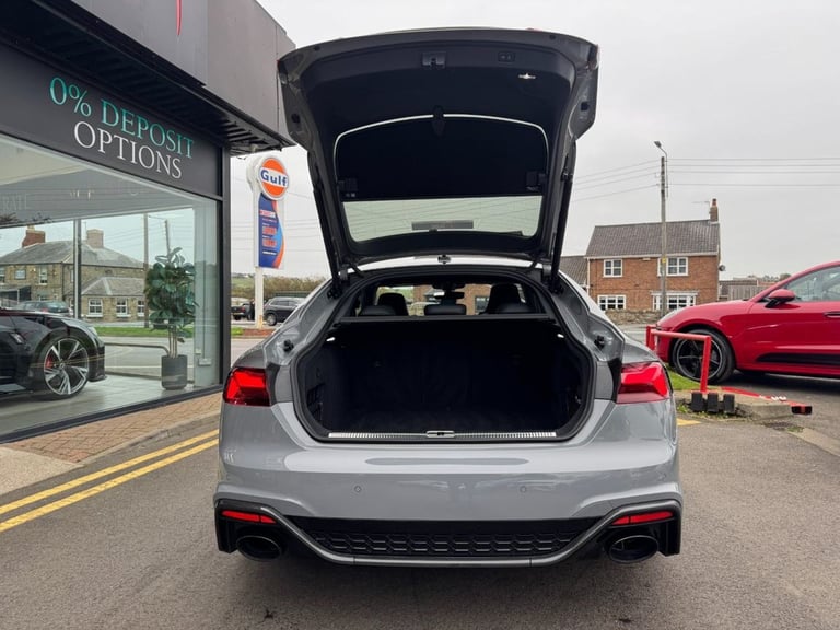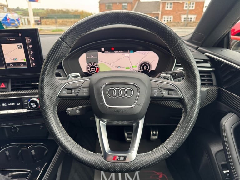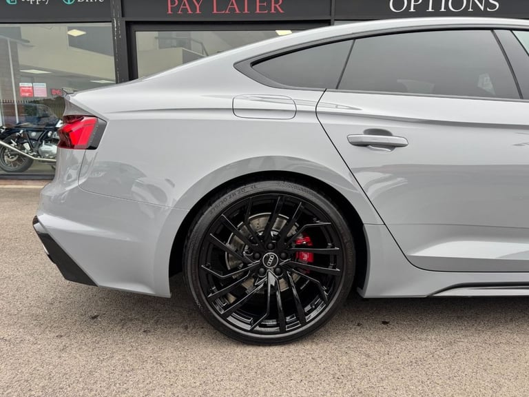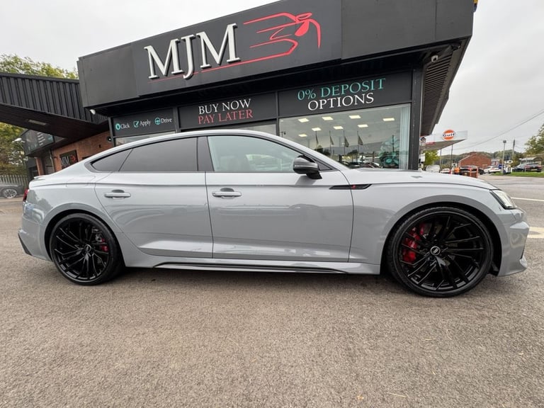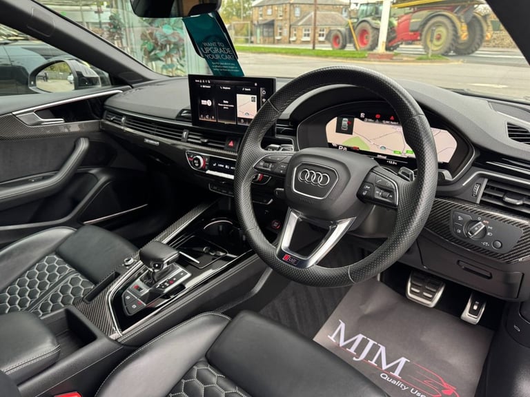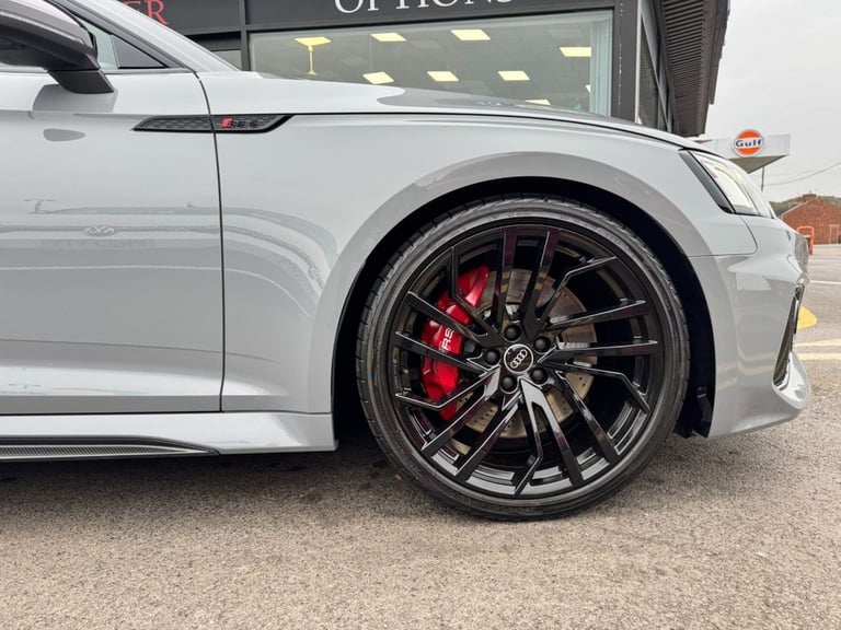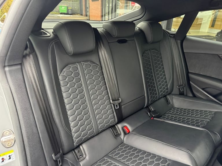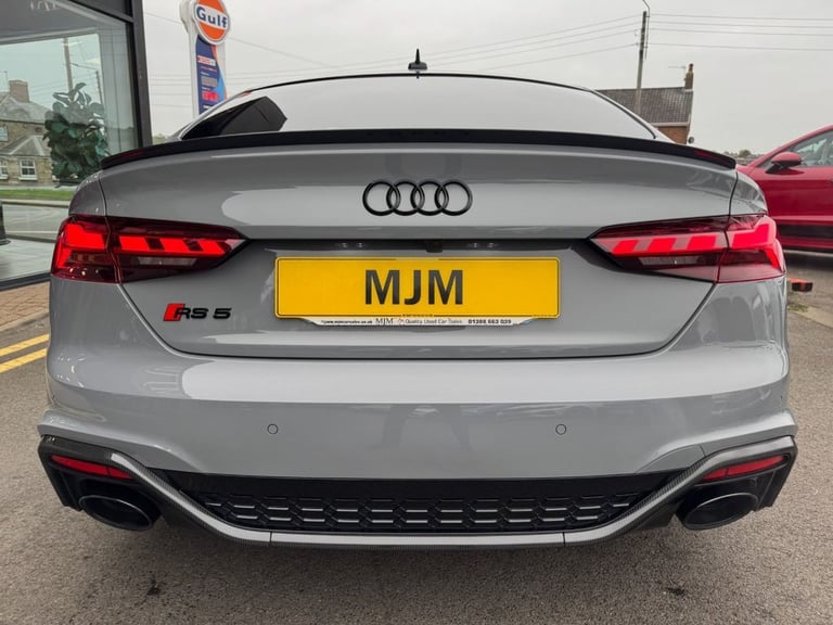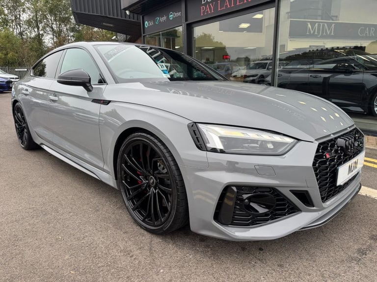 AUDI RS5 2.9 TFSI V6 CARBON BLACK SPORTBACK 5DR PETROL TIPTRONIC QUATTRO EURO 6 (450 PS) - A TRULY STUNNING EXAMPLE FINISHED IN ICONIC NARDO GREY, OFFERING A PERFECT BLEND OF POWER, STYLE, AND LUXURY. THIS RS5 BOASTS A HUGE SPECIFICATION INCLUDING HEATED AND MASSAGE NAPPA LEATHER SPORTS SEATS, A HEATED FLAT-BOTTOMED STEERING WHEEL, AND A FULL CARBON EXTERIOR PACK THAT ENHANCES ITS AGGRESSIVE STANCE. INSIDE, THE CABIN FEATURES A CARBON INTERIOR TRIM, AMBIENT LIGHTING, AND THE OUTSTANDING BANG & OLUFSEN SOUND SYSTEM FOR AN IMMERSIVE AUDIO EXPERIENCE. EQUIPPED WITH 20” GLOSS BLACK ALLOYS, RED BRAKE CALIPERS, AND MATRIX LED HEADLIGHTS, THIS RS5 LOOKS AS GOOD AS IT PERFORMS. OTHER HIGHLIGHTS INCLUDE THE COMFORT + SOUND PACK, AUDI DRIVE SELECT, VIRTUAL COCKPIT, KEYLESS GO, PARKING SYSTEM PLUS WITH REAR CAMERA, AND THE AUDI SMARTPHONE INTERFACE. REFINEMENT MEETS RAW PERFORMANCE — THIS RS5 IS SIMPLY STUNNING THROUGHOUT. .20in Alloy Wheels - 9.0J 5-Segment-Spoke, Brake Calipers - Red, Comfort and Sound Package, Nardo Grey, Inlays - Carbon Twill, Fine Nappa Leather - RS Super Sports with Pneumatic Massage Function - Black with Rock Grey Honeycomb Contrast Stitching, Brake Calipers - Red, Storage and Luggage Compartment Package, Comfort and Sound Package, Nardo Grey, 2 USB Charging Ports, 20in Alloy Wheels - 9.0J 5-Segment-Spoke - Evo Style Design - in Glossy Black - Audi Sport, 6-Airbag System, Anti Theft Locking Wheel Bolts, Anti-Theft Alarm, Audi Beam, Audi Connect Infotainment Services (36 Month Subscription From New), Audi Connect Safety and Service, Audi Connect with Amazon Alexa Integration, Audi Matrix LED Headlights with LED Rear Lights and Dynamic Front and Rear Indicators, Audi Rings and Lettering - Glossy Black, Audi Side Assist, Audi Smartphone Interface, Audi Sound System, Audi Virtual Cockpit, Auto-Dimming Rear-View Mirror, Automatic Start-Stop with Coasting Functionality and Efficiency Programme, Bluetooth Interface, Brake Calipers Painted in Black with RS 5 Logo at the Front, Carbon Black Styling Pack, Cloth Headlining in Black, Cruise Control System with Speed Limiter, DAB Digital Radio Reception, Deluxe 3-Zone Electronic Climate Control, Door Handles - Body Coloured, Door Mirrors - Heated-Electrically Adjustable-Folding-Auto-Dimming, Door Sill Trims - Illuminated with RS5 Logo, ESC - Electronic Stabilisation Control inc ABS - ASR and EDL, Electric Windows - Front, Electrically Adjustable Front Seats, Electromechanical Power Steering, Email - Calendar and Text Messages can be Displayed on your Vehicles MMI, Exterior Mirror Housings in High-Gloss Black, First Aid Kit and Warning Triangle, Front Centre Armrest, Front and Rear Floor Mats, Heated Front Seats, Hill Hold Assist, ISOFIX Child Seat Mounting and Top Tether, Inlays - Carbon Twill, Keyless Go, LED Interior Light Package, Leather Door Armrests and Knee Pad, Leather Steering Wheel in 3-Spoke Design with Multi-Function Plus and Heating with RS Badging, Light and Rain Sensor, MMI Navigation Plus with MMI Touch, Multi Collision Brake Assist, Parking System Plus - Front and Rear Sensors, Pedals in Stainless Steel, Pop-Up Bonnet for Pedestrian Protection, Pre-Sense City, Privacy Glass and Front Acoustic Glazing, RS Audi Drive Select, RS Dual-Branch Chrome Tailpipes with Large Oval Pipes Each on Left and Right, RS Exhaust System, RS Model Enhanced Braking System, RS Sports Suspension, RS-Specific Gear Lever Kn