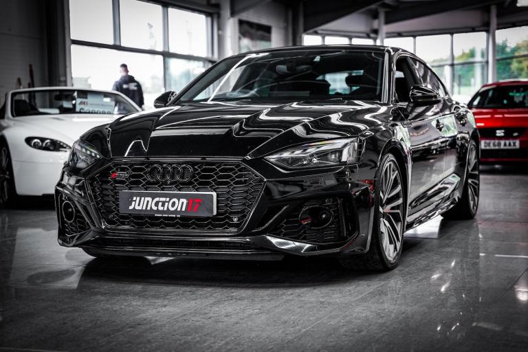*CLICK - BUY - COLLECT* FINANCE AVAILABLE! HPI CLEAR! Junction 17 Cars now have to offer a stunning Audi RS5 2.9 TFSI V6 Vorsprung Sportback Tiptronic quattro Euro 6 (s/s) 5dr.. 1 Former Keeper from New.. Main Dealer Service History.. Finished in Mythos Black Metallic.. Huge Specification.. 20'' Alloys.. Head Up Display.. Bang and Olufsen Sound.. Heated Front Seats with Massage Function.. Heated Steering Wheel.. Adaptive Cruise Control.. 3 Zone Climate Control.. 360 Degree Camera System with Park Assist.. Apple CarPlay/Android Auto.. Navigation.. Rear Privacy Glass.. and more.*ANY THIRD PARTY VEHICLE INSPECTIONS ARE WELCOME* *WE WILL BEAT ANY CAR VALUATION SITE FOR YOUR PART EXCHANGE* Junction 17 Cars (Runner Up at the Motor Trader Independent Dealer Awards 2019 nominated for Car Supermarket of the Year Award) is a unique family run business with over 7 millions worth of stock currently split over our purpose-built showroom in Yaxley, Peterborough and our new showrooms in Grantham and Rugby. Our vehicles can also be reserved with a 99 refundable holding deposit to ensure that they are professionally prepared/valeted for your viewing pleasure. Competitive HP and PCP packages are available with decision/approval available within 15 minutes. We also offer comprehensive warranties over a variety of different terms as well as Williams Ceramic Coating, Flexfuel Engine Carbon Cleaning and more. **NATIONWIDE DELIVERY AVAILABLE** Payment : maximum 500 card payment balance by bank transferThe vehicle is being sold on behalf of a third party for whom we act as an agent