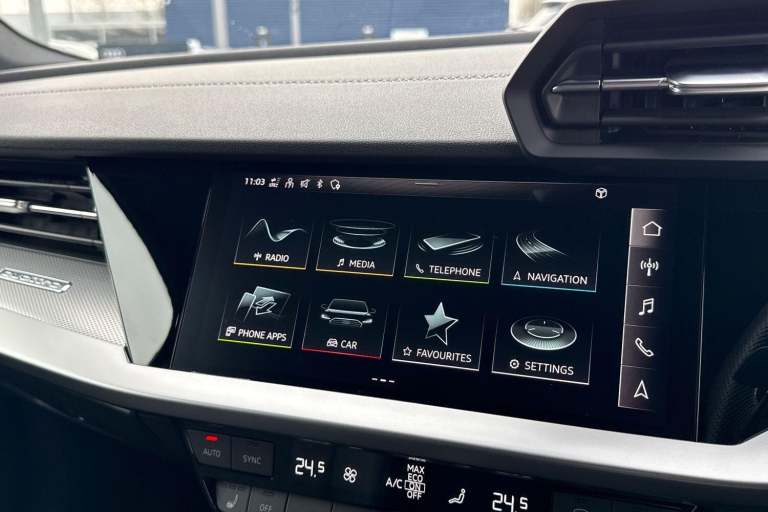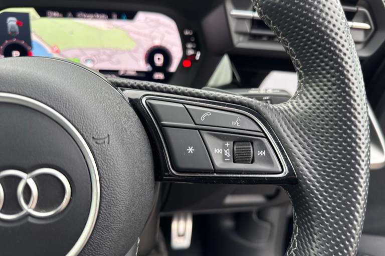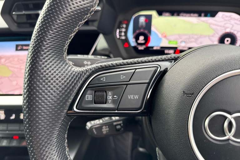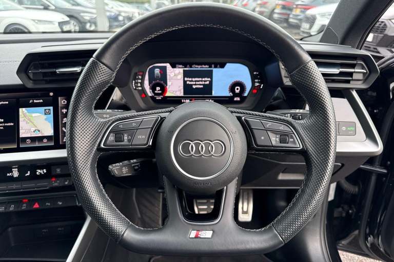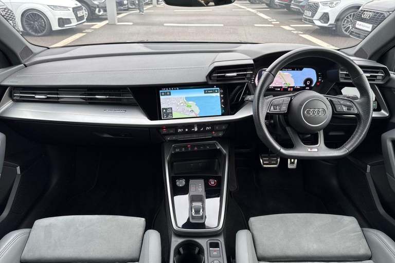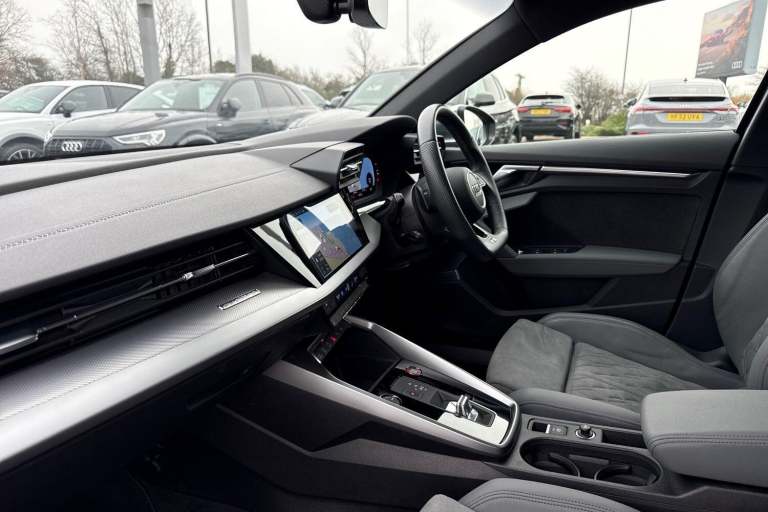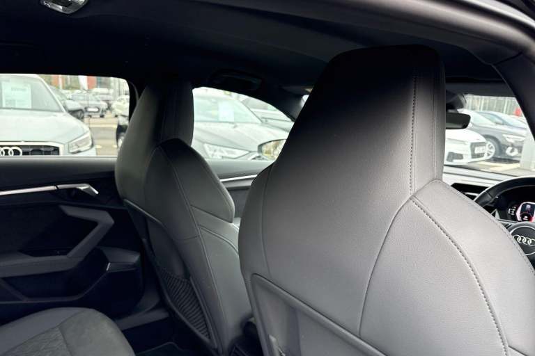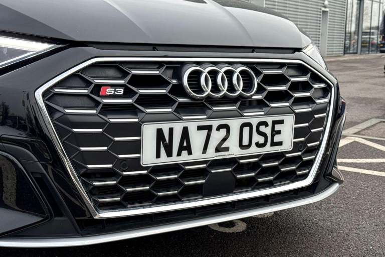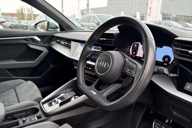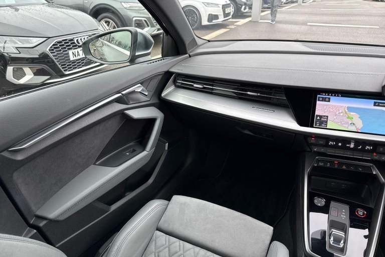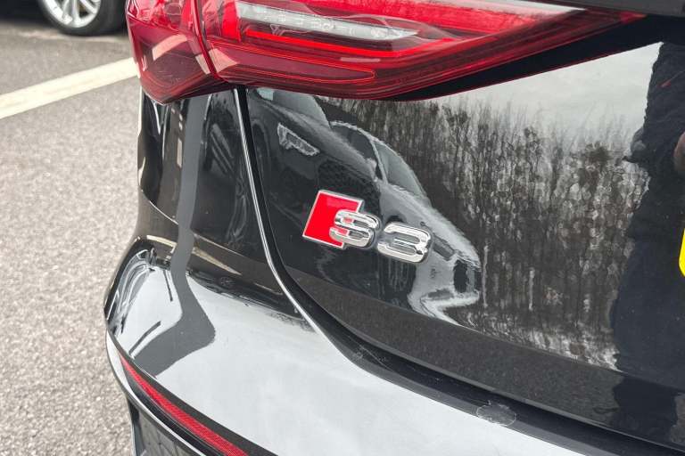 COMFORT & SOUND PACK ( HEATED FRONT SEATS, PARK ASSIST WITH PARKING AID PLUS, SATELLITE NAVIGATION, REAR PARKING CAMERA, BANG & OLUFSEN PREMIUM SOUND SYSTEM WITH 3D SOUND ) HIGH BEAM ASSIST, MULTI FUNCTION STEERING WHEEL, HILL HOLD ASSIST, CRUISE CONTROL, AUDI VIRTUAL COCKPIT, LANE DEPARTURE WARNING, APPLE CARPLAY, ANDROID AUTO, DAB RADIO, TINTED WINDOWS - PRIVACY GLASS, FRONT AND REAR PARKING SENSORS, SPLIT FOLDING REAR SEATS, LIGHT & RAIN SENSOR, AUTO DIMMING REAR VIEW MIRROR, SELECTABLE DRIVING MODES, PUSH BUTTON START, MYTHOS BLACK METALLIC WITH LEATHER/ALCANTARA UPHOLSTERY, 19'' 5 ARM TRAPEZOID DIAMOND CUT ALLOY WHEELS, DUAL ZONE CLIMATE CONTROL, LED HEADLIGHTS WITH DYNAMIC REAR INDICATORS, VOICE ACTIVATED CONTROLS AND MUCH MORE.All Audi Approved used cars are offered with a 12-month warranty and roadside assistance.Portsmouth Audi are delighted to offer this Audi S3 in Mythos Black over Alcantara/ Leather and has completed just 19129 miles., We are proud to be part of the Harwoods group, a family run business established in 1931. With four Approved Audi retailers within our group, we have access to over 400 vehicles. If this isn't the right car for you, please contact us and we will find it. Our group stock has spec to include Sunroof, Leather, Heated Seats, Apple Car Play, Heated Steering Wheel, Reverse Camera, Rear Entertainment, Towbar, 360-degree camera, Comfort & Sound Pack, Tech Pack, Panoramic Sun Roof, Tow Bar, Black Pack, Air Suspension, Apple Carplay, Adaptive Cruise, Massage Seats, Refrigerator, AWD, Technology Pack, Head up Display, Vorsprung, Technik, Black Edition, S-Line, S Line, Edition 1, TFSI, Quattro, Sportback, LWB. Other colour options including Black, Blue, Green, Silver, White, Red, Grey, Yellow, Orange. Interior options of Ebony, Black, Ivory, White, Tan, Cream, Oyster, & Euro 6 ULEZ compliant drive trains.