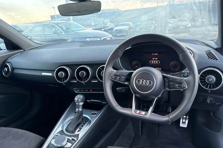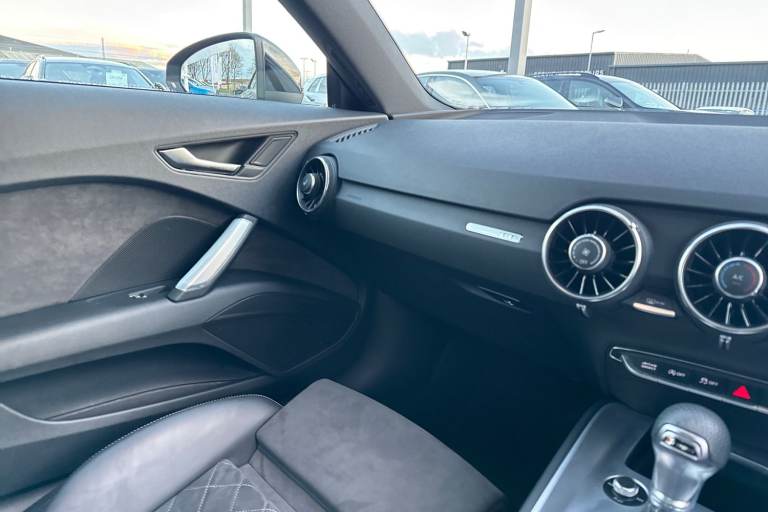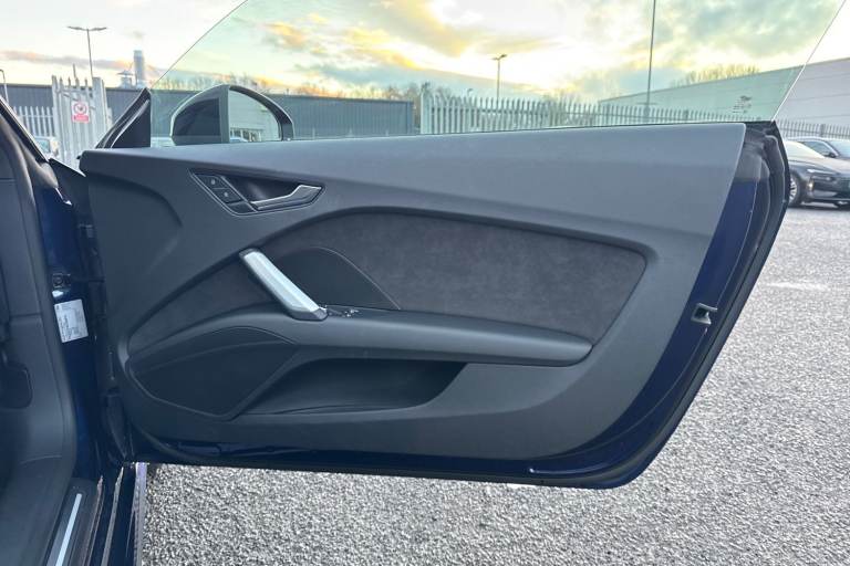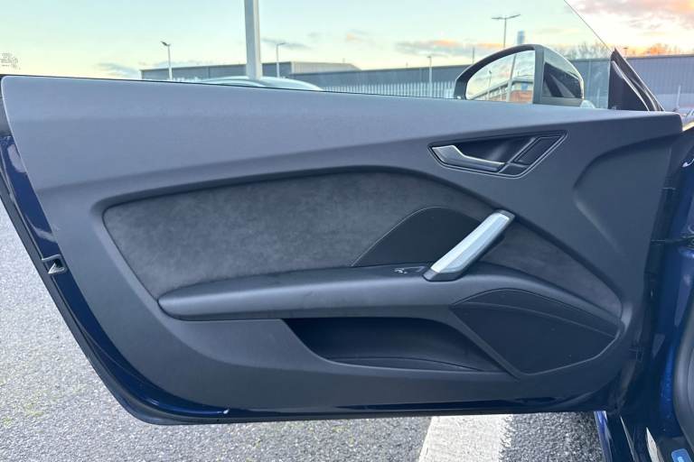 Carlisle Audi is pleased to introduce this Audi TT Black Edition, finished in the eye catching Navarra Blue. This 2.0 litre petrol sports car boasts an impressive 197PS and comes with a smooth s tronic automatic gearbox, allowing you to get from A to B easily. To the front youll find LED headlights paired with dynamic LED rear lights and indicators, ensuring both visibility and sporty aesthetics. This vehicle sits on a set of 20"" alloy wheels that allow you to stand out from the crowd alongside privacy glass and a fixed rear spoiler. This Audi TT is also fitted with a Technology Pack which includes Audi side assist and Camera-based road sign recognition which keeps you informed whilst youre on the move. This pack also includes the Audi connect Navigation & Infotainment system that allows you to easily navigate whilst on the move. Inside youll find front seats fitted with 4-way lumbar support, allowing you to sit in comfort no matter the length of your journey. The main screen within this vehicle is in front of the driver, this can be easily controlled using buttons on the steering wheel and besides the driver. Here you can see information about your car, phone connectivity and navigation system alongside change settings within your vehicle.