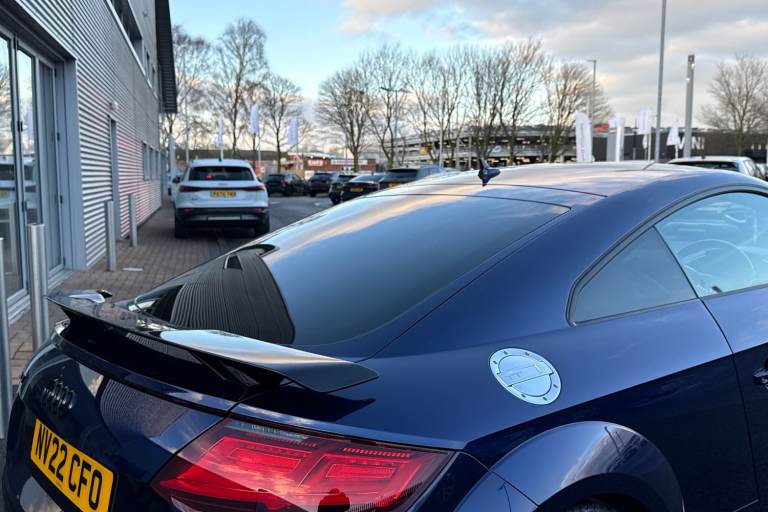 Carlisle Audi is pleased to introduce this Audi TT Black Edition, finished in the eye catching Navarra Blue. This 2.0 litre petrol sports car boasts an impressive 197PS and comes with a smooth s tronic automatic gearbox, allowing you to get from A to B easily. To the front youll find LED headlights paired with dynamic LED rear lights and indicators, ensuring both visibility and sporty aesthetics. This vehicle sits on a set of 20"" alloy wheels that allow you to stand out from the crowd alongside privacy glass and a fixed rear spoiler. Inside youll find front seats fitted with 4-way lumbar support, allowing you to sit in comfort no matter the length of your journey. The main screen within this vehicle is in front of the driver, this can be easily controlled using buttons on the steering wheel and besides the driver. Here you can see information about your car, phone connectivity and navigation system alongside change settings within your vehicle. This vehicle is compliant with the Clean Air Zone (CAZ) or Ultra Low Emission Zone (ULEZ) standards! Not only will it help you avoid penalties and fines when traveling in the city, but it also means youll be doing your bit to help reduce emissions. With compliance standards becoming increasingly strict, making sure your car is up to scratch is more important than ever.