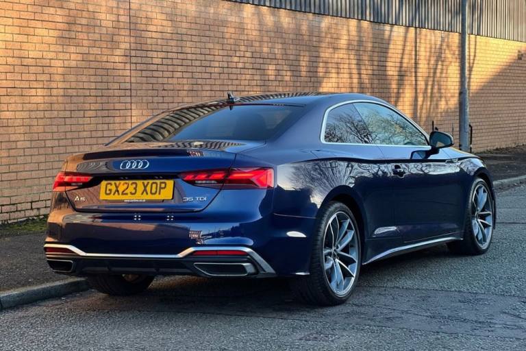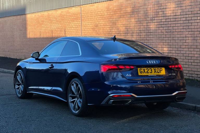 This 2023 Audi A5 TDI S line presents a superb ownership proposition, having had only one owner from new and boasting a clear vehicle history check. Under the bonnet, youll find a capable 2.0 litre diesel engine, meeting Euro 6 emissions standards. The S line trim enhances its appeal, and youll appreciate the convenience of automatic headlights that activate with the light and rain sensor, alongside heated front seats for added comfort. Illumination is provided by striking LED headlights and rear lights, complemented by distinctive LED daytime running lights. Further enhancing your driving experience, this Audi A5 features the Parking System Plus, offering front and rear sensors to assist with manoeuvring. Connectivity is seamless thanks to the integrated Bluetooth interface, allowing for easy phone integration. Practicality is also a strong point, with a generously sized boot offering ample storage for your needs. These carefully selected features and its single owner history demonstrate a well maintained and thoughtfully equipped vehicle, ready for its next chapter. Lifetime warranty available on this car, plus a £1,000 finance contribution when you part exchange. Voted UK Car Supermarket of the Year two years running, we offer 0% finance, part exchange, and lifetime warranties across our entire range. Every car is thoroughly inspected before sale and comes with a full history check, so you can buy with complete peace of mind. Buy with confidence on our best finance rates. Proud winners of the CarGurus Top-Rated Dealer 2022 and the MotoNovo Extra Mile Award. .19in Alloy Wheels - 8.5J 5-Spoke-Cavo Design - Contrasting Grey - Partly Polished, 4-Way Electric Lumbar Support, 6-Airbag System, 8 Passive Loudspeakers, Anti Theft Locking Wheel Bolts, Anti-Theft Alarm, Audi Connect Infotainment Services (36 Month Subscription From New), Audi Connect Safety and Service, Audi Connect with Amazon Alexa Integration, Audi Drive Select, Audi Smartphone Interface, Audi Virtual Cockpit, Auto-Dimming Rear-View Mirror, Automatic Start-Stop with Coasting Functionality and Efficiency Programme, Bluetooth Interface, Body Coloured Side Sill Trims, Cloth Headlining in Black, Contrast Stitching on Seats - Steering Wheel and Gear Lever Gaiter, Cruise Control System with Speed Limiter, DAB Digital Radio Reception, Deluxe 3-Zone Electronic Climate Control, Door Handles - Body Coloured, Door Mirrors - Electrically Adjustable - Heated and Folding - Automatically Dimming, Electric Boot Lid Release, Electric Windows - Front, Electromechanical Power Steering, Email - Calendar and Text Messages can be Displayed on your Vehicles MMI, ESC - Electronic Stabilisation Control inc ABS - ASR and EDL, First Aid Kit and Warning Triangle, Flat-Bottomed 3-Spoke Leather High Multi-Function Sports Steering Wheel with Perforated Leather and S Badging and Paddles, Front Centre Armrest, Front Spoiler Lip in Body Colour, Gear Lever Knob in Black Perforated Leather, Heated Front Seats, Hill Hold Assist, Illuminated Door Sill Trims with S Logo, Inlays - Matt Brushed Aluminium, ISOFIX Child Seat Mounting and Top Tether, Keyless Go, LED Headlights and Rear Lights with LED Daytime-Running Lights, LED Interior Light Package, Light and Rain Sensor, Manual Seat Adjustment, Microfibre Dinamica - Sports Seats with S Embossed Logo - Black, MMI Navigation Plus with MMI Touch, Multi Collision Brake Assist, Navarra Blue, Parking System Plus - Front and Rear Sensors, Pedals and Footrest - Stainless Steel, Pop-Up Bonnet for Pedestrian Protection, Pre-Sense City, Privacy Glass, Radiator Grille with Honeycomb Structure in Grained Matt Black, Rear-View Camera, S Line Badges on Front Wings, S Line Front and Rear Bumpers and Side Skirt, S Line Rear Diffuser in Matt Anthracite Black with Trim Strip in Matt Aluminium Silver, Seat Belt Monitoring, Side Air Inlets in Grained Matt Black with Inlay in Matt Aluminium Silver, Split-Folding 2-Seater Rear Seat Bench in 3 Parts - 40-20-40 with Rear Centre Armrest, Sport Suspension, Tailpipe Trims in Matt Aluminium Silver, Tool Kit, Two Additi