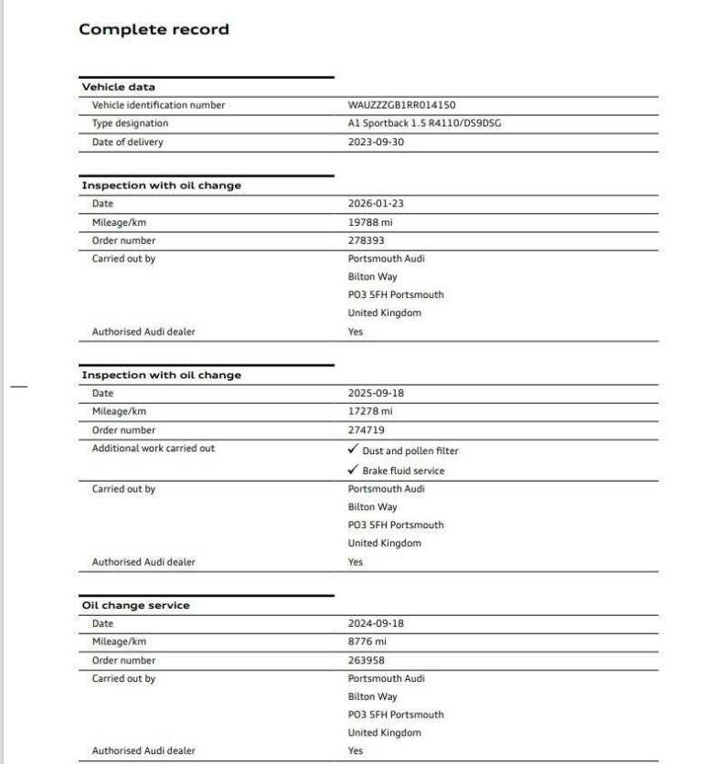 SUPPLIED & SERVICED BY HARWOODS PORTSMOUTH AUDI, MULTI FUNCTION STEERING WHEEL, HILL HOLD ASSIST, CRUISE CONTROL, AUDI VIRTUAL COCKPIT, LANE DEPARTURE WARNING, APPLE CARPLAY, ANDROID AUTO, DAB RADIO, TINTED WINDOWS - PRIVACY GLASS, FRONT AND REAR PARKING SENSORS, SPLIT FOLDING REAR SEATS, LIGHT & RAIN SENSOR, AUTO DIMMING REAR VIEW MIRROR, SELECTABLE DRIVING MODES, CHRONOS GREY METALLIC WITH LEATHER/FABRIC UPHOLSTERY, 18'' DIAMOND CUT ALLOY WHEELS, AIR CONDITIOING, LED HEADLIGHTS WITH DYNAMIC REAR INDICATORS, VOICE ACTIVATED CONTROLS AND MUCH MORE.All Audi Approved used cars are offered with a 12-month warranty and roadside assistance.This car comes with the balance of the manufacturer’s warranty until 29/9/2026.Portsmouth Audi are delighted to offer this Audi A1 in Chronos grey over Fabric/ Leather and has completed just 19782 miles., We are proud to be part of the Harwoods group, a family run business established in 1931. With four Approved Audi retailers within our group, we have access to over 400 vehicles. If this isn't the right car for you, please contact us and we will find it. Our group stock has spec to include Sunroof, Leather, Heated Seats, Apple Car Play, Heated Steering Wheel, Reverse Camera, Rear Entertainment, Towbar, 360-degree camera, Comfort & Sound Pack, Tech Pack, Panoramic Sun Roof, Tow Bar, Black Pack, Air Suspension, Apple Carplay, Adaptive Cruise, Massage Seats, Refrigerator, AWD, Technology Pack, Head up Display, Vorsprung, Technik, Black Edition, S-Line, S Line, Edition 1, TFSI, Quattro, Sportback, LWB. Other colour options including Black, Blue, Green, Silver, White, Red, Grey, Yellow, Orange. Interior options of Ebony, Black, Ivory, White, Tan, Cream, Oyster, & Euro 6 ULEZ compliant drive trains.