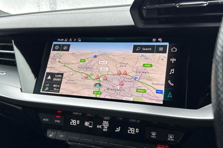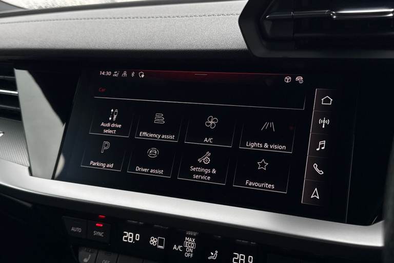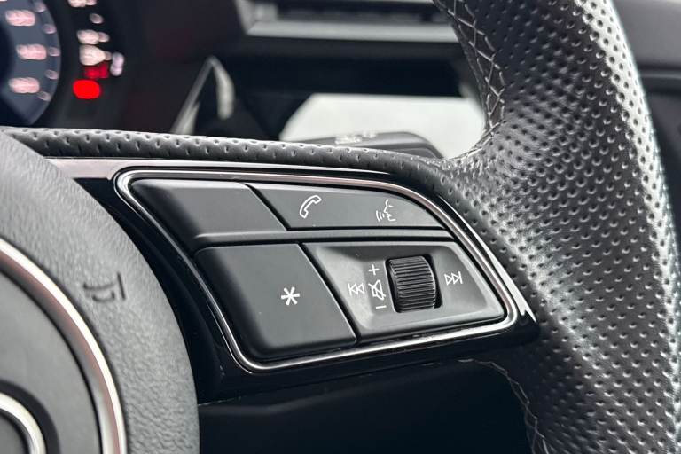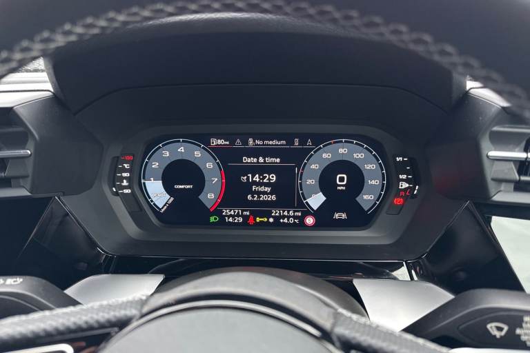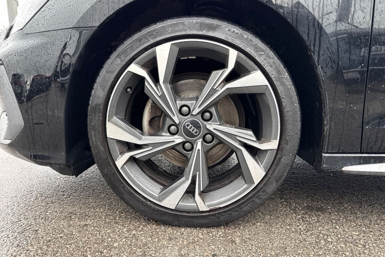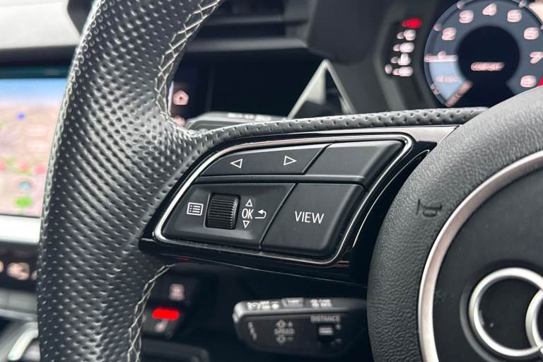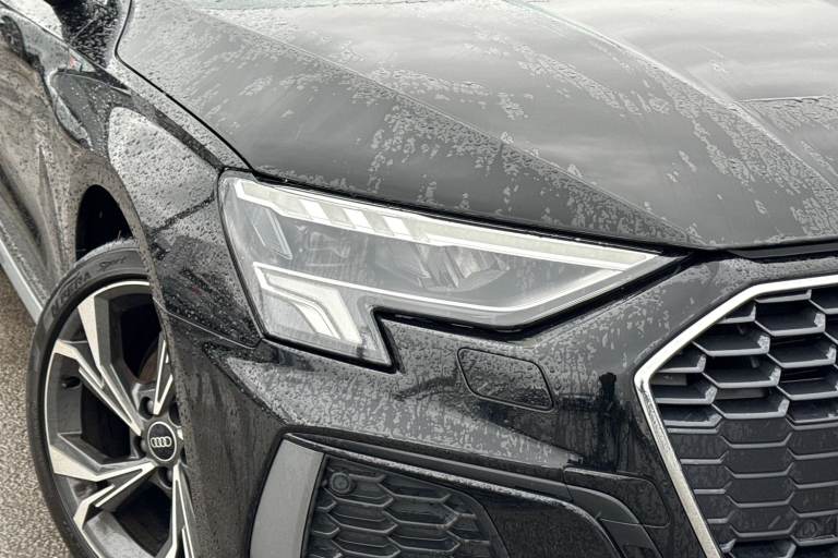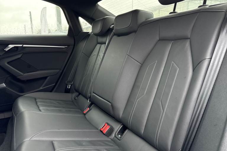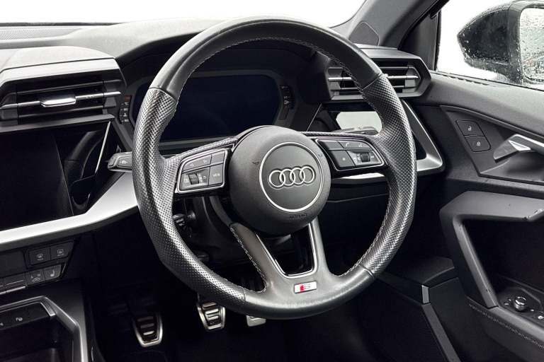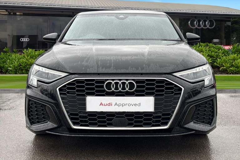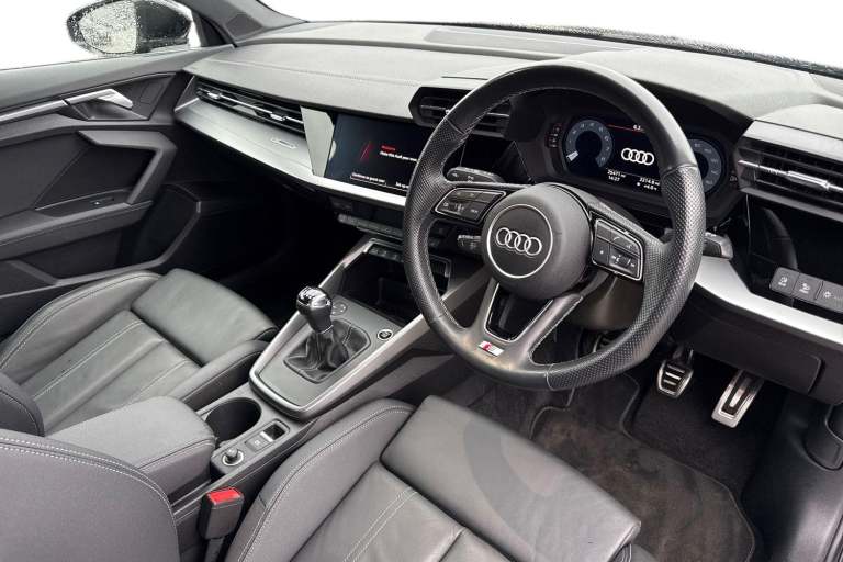 Discover the perfect blend of performance, style, and technology with this Audi A3 Saloon S line in striking Mythos Black. Beneath the bonnet, a smooth 1.5-litre TFSI engine delivers 150 PS through a precise 6-speed manual gearbox, paired with a Sport suspension for agile, confident handling. Rolling on 18"" Graphite Grey diamond-cut alloy wheel, this A3 offers a dynamic stance and enhanced grip, complemented by the S line bumpers and roof spoiler for an unmistakably sporty look. LED headlights with dynamic rear indicators ensure you stand out, while providing exceptional visibility in all conditions. Step inside to a cabin of refined comfort: heated front sports seats with 4-way lumbar support, aluminium interior touches, and a leather multi-function steering wheel create a luxurious, driver-focused environment. Dual-zone climate control, privacy glass, and 425L boot space make every journey effortless and practical. Technology is at your fingertips with Audi Virtual Cockpit, MMI Navigation Plus with a 10.1-inch touchscreen, Bang & Olufsen 3D sound, wireless charging via Audi phone box, and full smartphone integration. Safety and convenience are paramount with rear view camera, park assist with Parking Aid Plus, collision avoidance, lane departure warning, camera-based traffic sign recognition, and Audi Pre-Sense Front. For more information on this Audi A3, please give us a call and a member of our friendly sales team will be more than happy to help you further to book a...