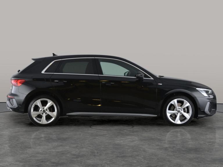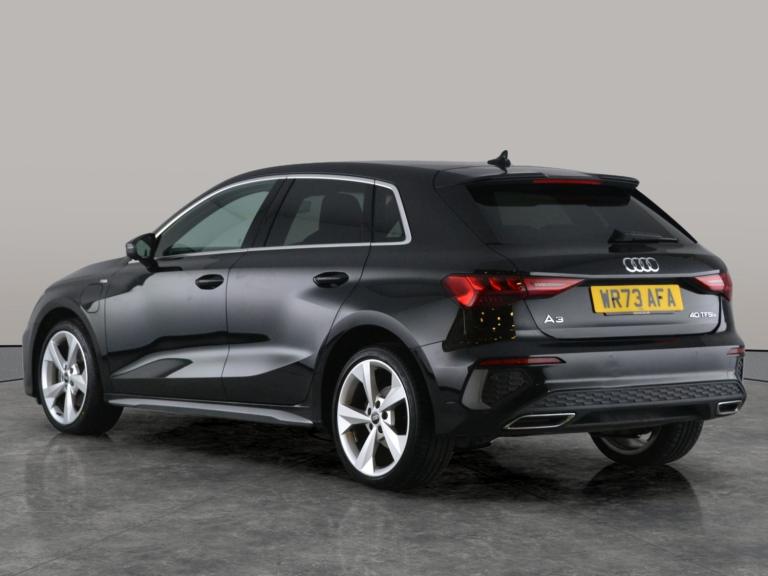 Experience the Audi A3 S line Sportback, a stylish black petrol plug-in hybrid that's as advanced as it is efficient. Enjoy seamless journeys with MMI Navigation Plus, Sat Nav, and LED headlights that light your way. Stay connected via Bluetooth and drive with confidence thanks to Lane Departure Warning and Traffic Sign Recognition. Switch driving modes for a personalised feel, and relax with climate control and air conditioning. Paddle shift gear changes add a sporty edge to every drive. Charging lead included. 1 service recorded, last serviced on 17/04/2026 at 23,384 miles. MOT to 29/09/2026. Visit our website for service history, online valuation, full vehicle specification plus multiple images. This vehicle is VAT qualifying. Any feature/option specified here is from 3rd party data. We cannot guarantee the accuracy of any specification supplied by a 3rd party. We recommend that you physically check the specification of the vehicle on site prior to purchase. This information does not form part of the buying contract. Terms & Conditions apply. We have over 2,000 cars available from our 10 national branches, check our website to see all our stock. Our Trustpilot rating is 4.4/5 with over 9,000 reviews.