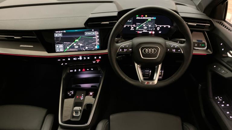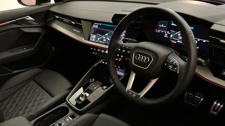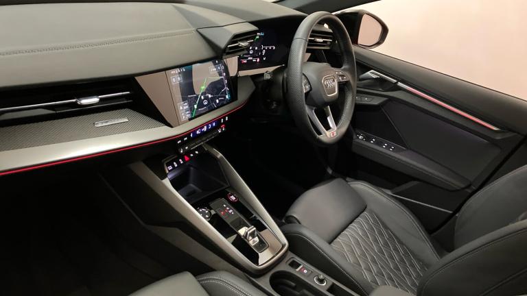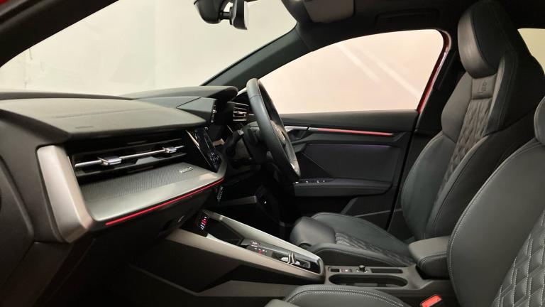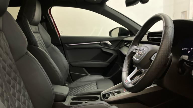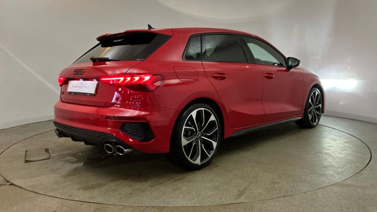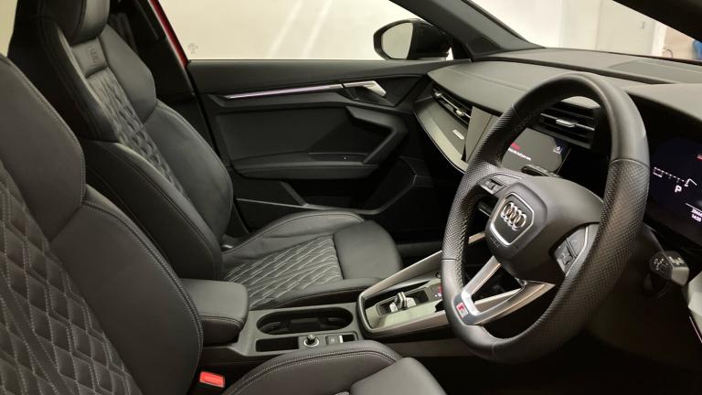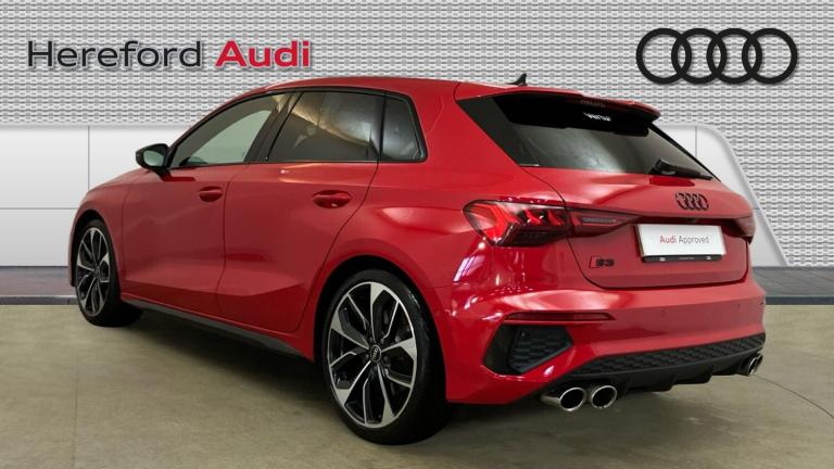 ***AUDI APPROVED USED***This 2023 Audi S3 Sportback Vorsprung TFSI 310 PS S tronic finished in striking Tango Red Metallic is a true driver’s car. Equipped with Audi’s legendary quattro all-wheel-drive system, it delivers exceptional handling and grip in all conditions.Stand out features include the advanced Matrix LED headlights, panoramic glass sunroof, and Head-up Display, making every journey both stylish and practical. The Interior Ambient Lighting Pack creates a luxurious atmosphere, while the Bang & Olufsen Premium Sound System with 3D sound offers an immersive audio experience.Parking and manoeuvring are effortless thanks to the rear-view camera, and with its sporty design and Vorsprung specification, this S3 combines performance, technology, and comfort in one complete package..Air Conditioning, Climate Control, Metallic Paint, Cruise Control, Satellite Navigation, Alloy Wheels, Leather Seats, Heated Seats, DAB Radio, Bluetooth, Panoramic Roof, Parking Sensors, Stop Start, USB, Manufacturer Approved, Electric Seats, Apple-Android Play, Rear Camera, Auto Lights, Lane Departure, Pre Crash Prevention, Rain Sensors& 4x4, Front/rear floor mats, Rear wiper, Rear electric windows, Front electric windows, Acoustic glass windscreen, Privacy glass - dark tinted rear window, rear door and side windows, Heat insulating glass windscreen, Electronic Stabilisation Control (ESC) including ABS, ASR and EDL, S suspension with damper control, Audi smartphone interface, Bluetooth interface, Voice control system with natural language interaction, Lane departure warning system, Collision avoidance assistant, Audi drive select (Auto, Comfort, Dynamic, Efficiency and Individual), Lane change assistant with exit warning system and rear cross traffic alert