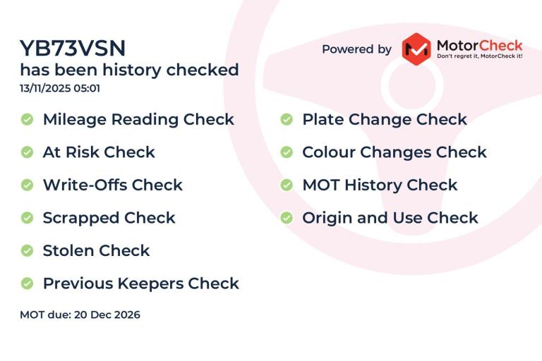 Our vehicle history check is provided for guidance only. Please check all the details with the seller before purchasing