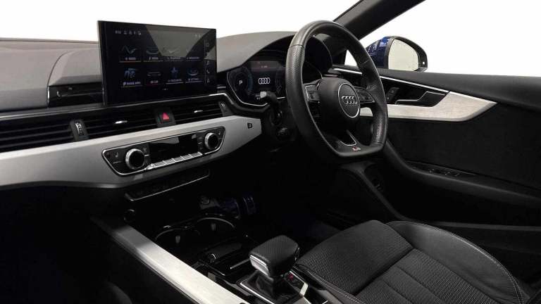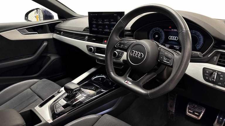 This stunning Approved Used Audi A5 S line 40 TFSI is finished in the striking Navarra Blue Metallic, a premium colour that perfectly complements the A5s sleek, coupe-inspired design and athletic stance. Powered by Audis refined and responsive 2.0-litre 40 TFSI petrol engine, this A5 delivers a smooth yet engaging drive, combining impressive performance with excellent efficiency. The S line specification enhances its sporty character with dynamic styling details and upgraded interior finishes. Exterior highlights include distinctive S line styling, larger alloy wheels, LED headlights and sharp body lines that give the A5 its unmistakable road presence. The Navarra Blue Metallic paintwork accentuates every contour, ensuring this car stands out from every angle. Inside, the cabin offers the premium quality you expect from Audi, with part-leather S line sports seats, a multifunction flat-bottom steering wheel, brushed aluminium inlays and a driver-focused cockpit. Audis advanced infotainment system provides seamless connectivity, navigation and smartphone integration, ensuring every journey is both comfortable and connected. As an Approved Used Audi, this vehicle has undergone comprehensive multi-point checks by trained Audi technicians and comes with warranty cover and roadside assistance for complete peace of mind. This vehicle is compliant with Clean Air Zone (CAZ) or Ultra Low Emission Zone (ULEZ) regulations, meaning it produces low emissions and helps to improve...