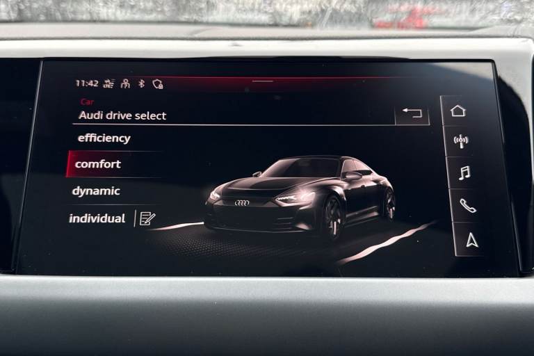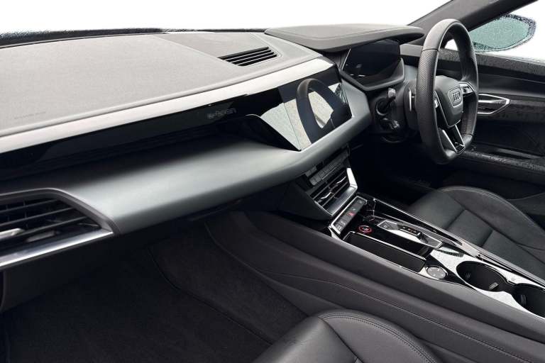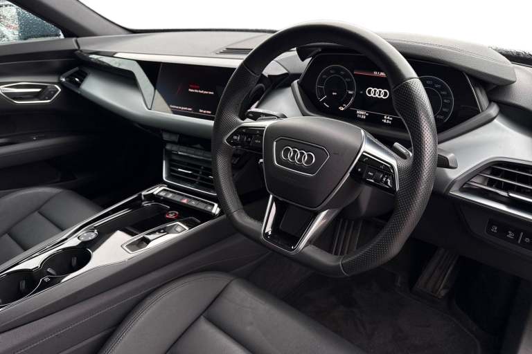The Audi e-tron GT quattro is a striking all-electric model that combines progressive design, exhilarating performance, and everyday luxury. With its sleek, low-slung silhouette and quattro all-wheel drive, the e-tron GT delivers confident handling and refined driving dynamics, whether cruising on the motorway or navigating city streets. Inside, the cabin offers a perfect balance of sportiness and comfort. Heated front sport seats upholstered in premium twin leather provide excellent support, while the 3-zone climate control ensures personalised comfort for all occupants. The panoramic glass sunroof floods the interior with natural light, enhancing the sense of space and refinement. Advanced technology is seamlessly integrated throughout. LED headlights deliver crisp illumination and a distinctive Audi lighting signature, while Parking System Plus and a rear-view camera make manoeuvring effortless. The Audi Phone Box with wireless charging keeps your smartphone powered and connected on the move, and the heat pump improves efficiency by optimising cabin heating without compromising driving range. Completing the exterior are stylish 20-inch alloy wheels that underline the e-tron GTs sporty character and elegant presence. Combining electric innovation, luxurious comfort, and unmistakable Audi design, the Audi e-tron GT quattro is a sophisticated choice for drivers seeking performance and sustainability in equal measure. For more information on this Audi E-Tron GT, please gi...